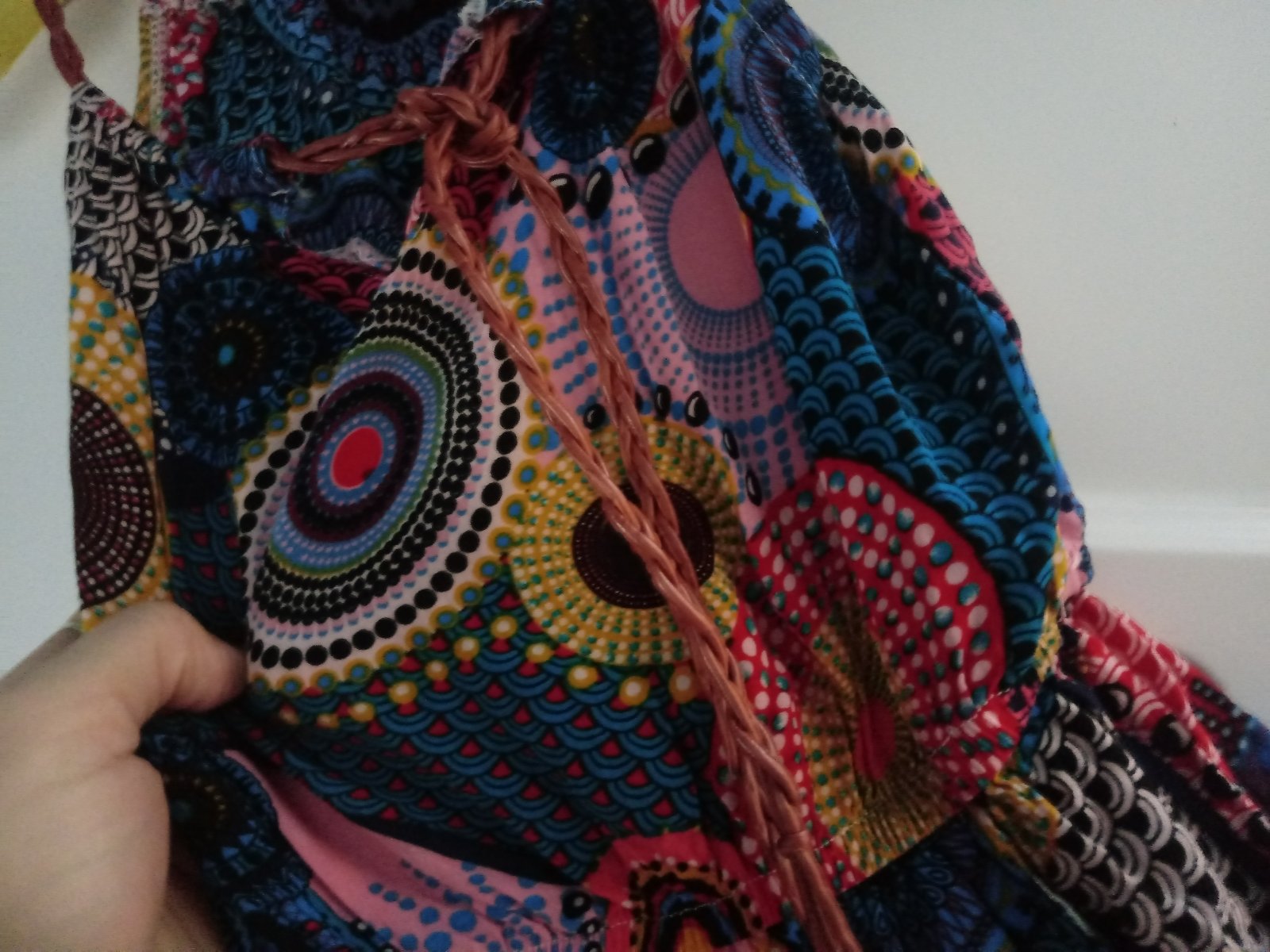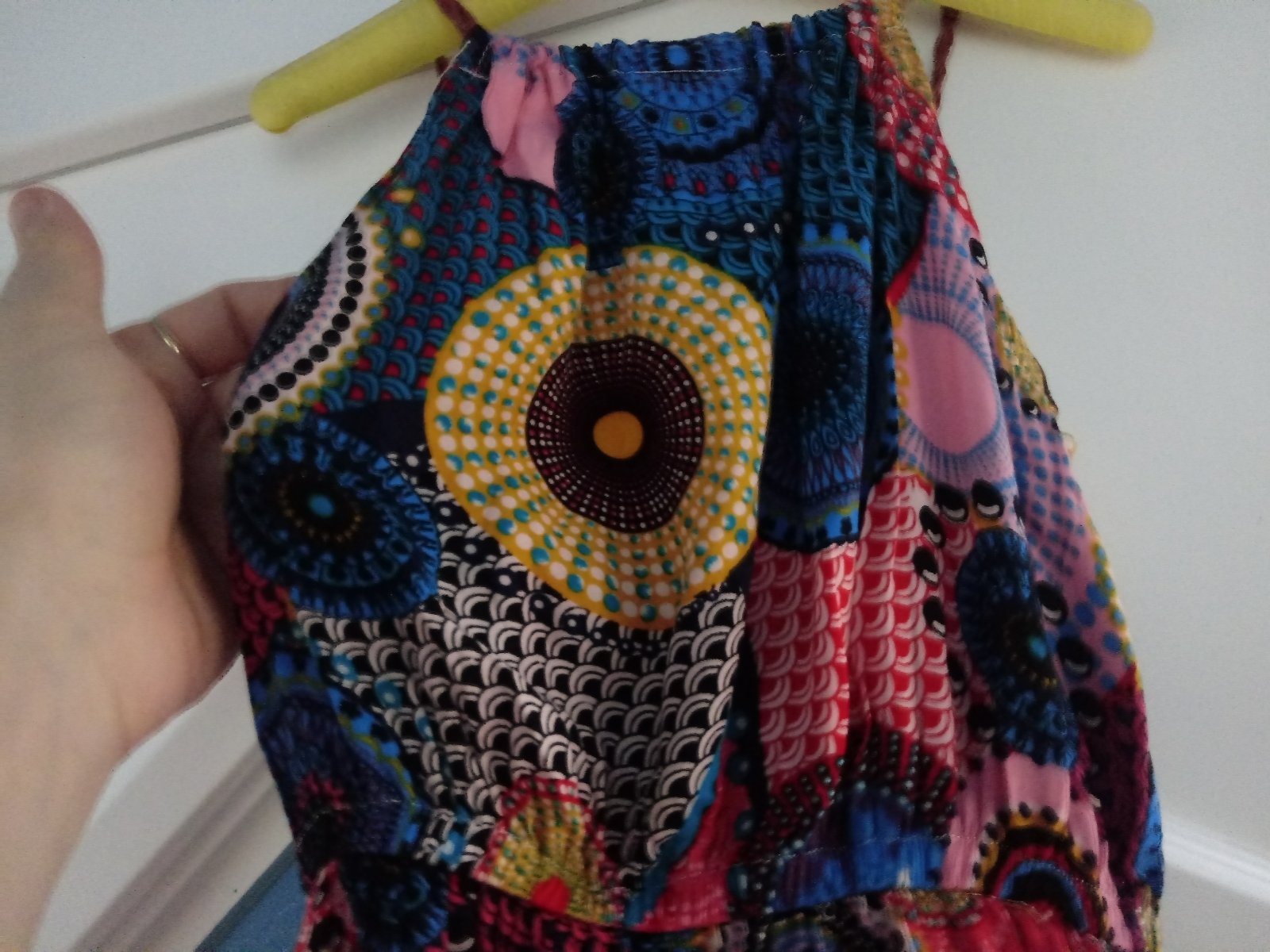 -celkovu dlzku sa dá nastavit, -- tak ako je odfoteny má 61cm, - samotná látková cast bez kozenkovych ramienok, s ktorymi sa dá nastavit celkovu dlzku / a ktoré su makucke/ má 50cm, v páse guma 2x23cm povoli max do 2x35cm, sirka pod pazuchami 2x32,5cm