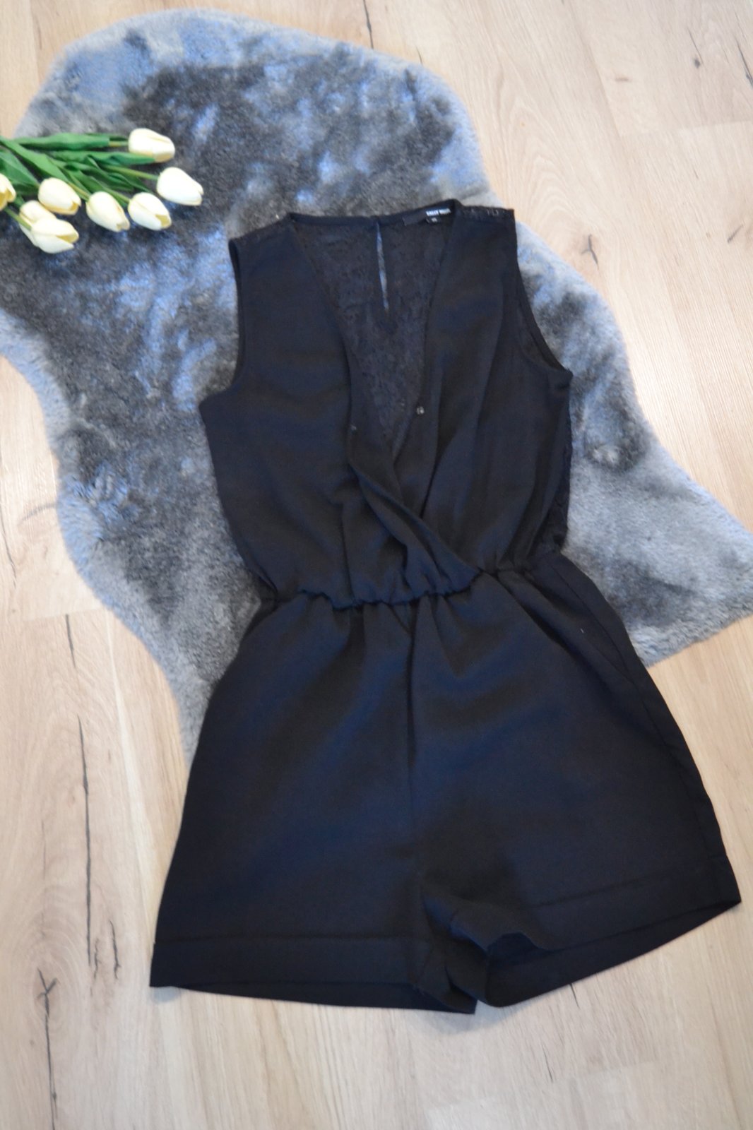 Elegantný krátky overal s čipkou na chrbte, veľ.XS