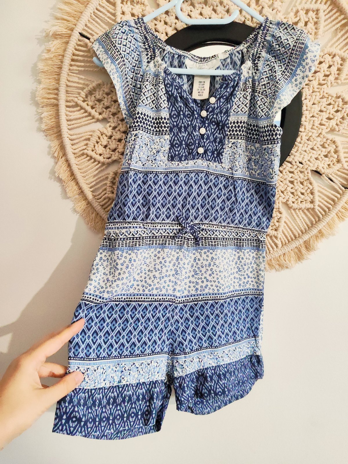 Modro-biely letný overal zn. H&M vo velkosti 5-6 r., noseny, no v zachovalom stave
