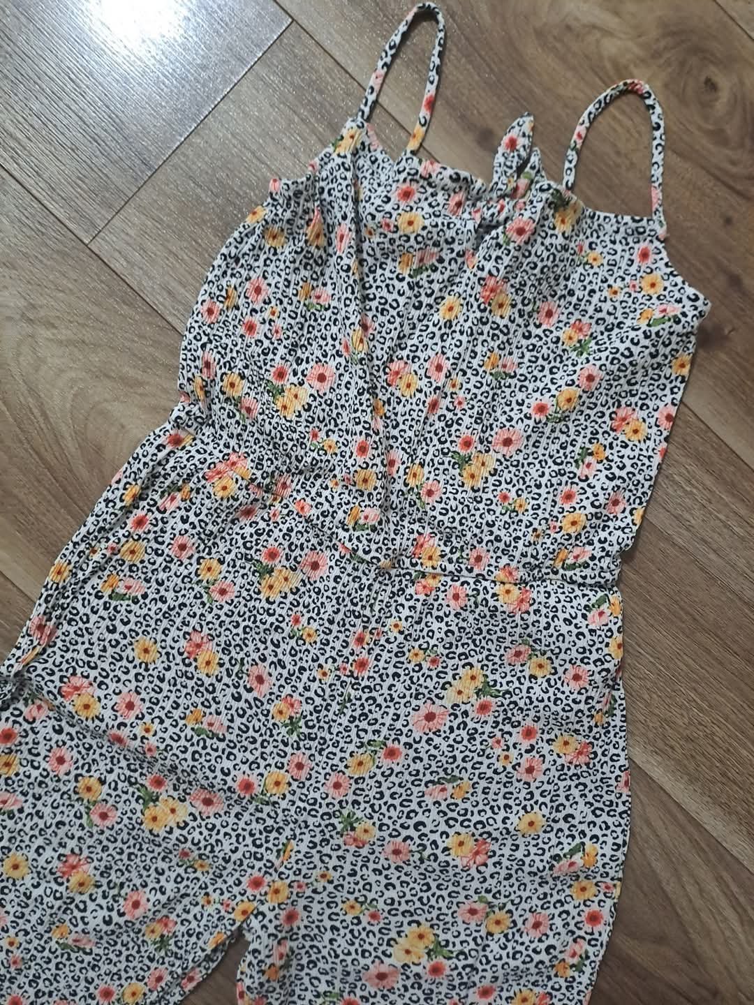 pohodlný, letný overal z bavlnenej tričkoviny, v páse na gumičku a zaviazanie dĺžka do pása 38cm, od pása 90cm...kroková 57cm obvod hrude 2x 40-45cm pás 2x30-40cm boky 2x 42-50cm A1