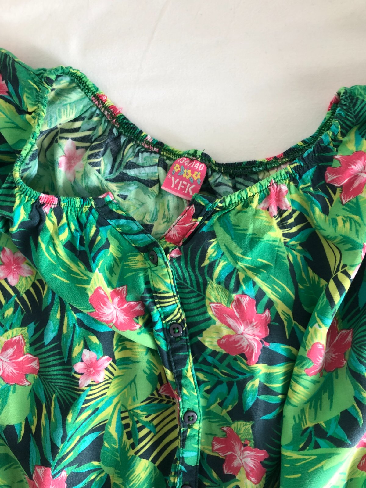Strih: Voľný strih, s elastickým/nariaseným výstrihom (možné nosiť aj spustené na ramenách).