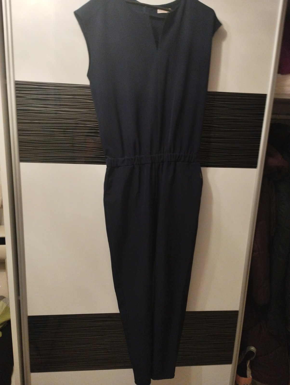 Predám elegantný overal 1x oblečený,pohodlný,v páse gumička, vzadu na zips, vhodný aj na svadbu namiesto šiat