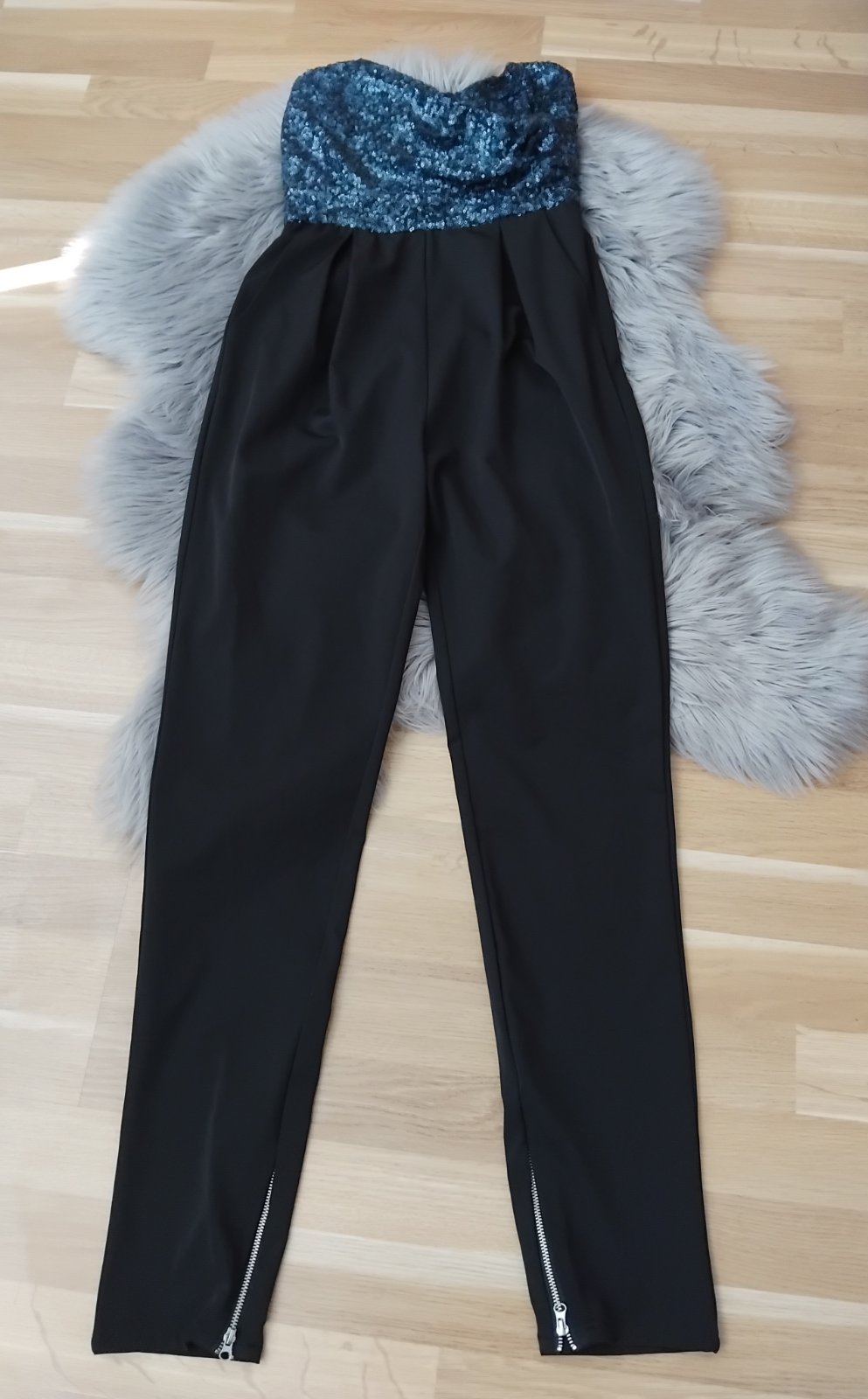 Krásny luxusny overal Rozmery : celková dĺžka cca 139 cm , vnut. Dĺžka nohavíc 71 cm, prsia 40 cm, pas 32 cm. Elasticky materiál