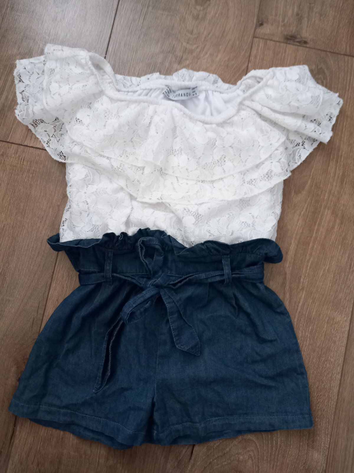 Biely overal s tmavomodrymi pružkami , tenky na leto k vode...na 4 roky. Bez poskodeni a zmolkov