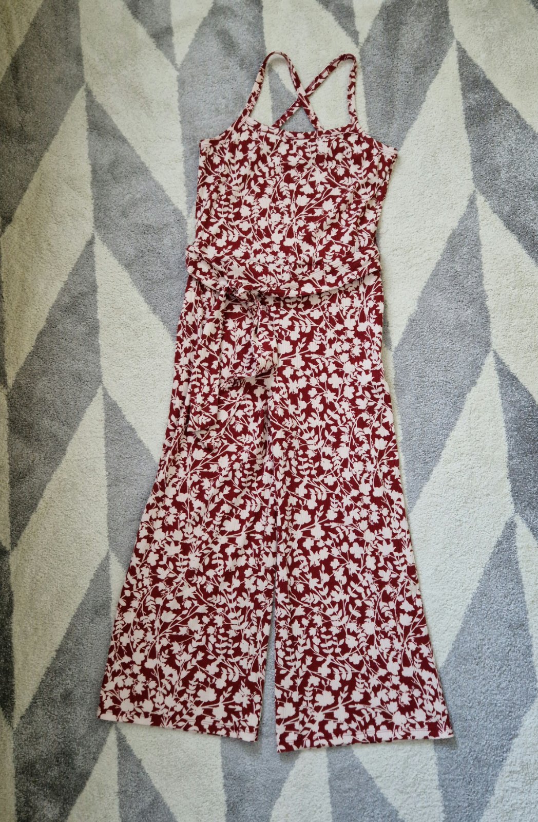Výborný stav, bez známok nosenia. Overal zn. Mango. Bez zapínania, na ramienka, vzadu prekrížené. Mäkký príjmený tenší materiál. Veľkosť M. Materiál: 94% polyester, 6% elastan. Rozmery: celková dĺžka 127cm, dĺžka od ramien po pás 44cm, obvod prsia 76cm, obvod pás 74cm.
