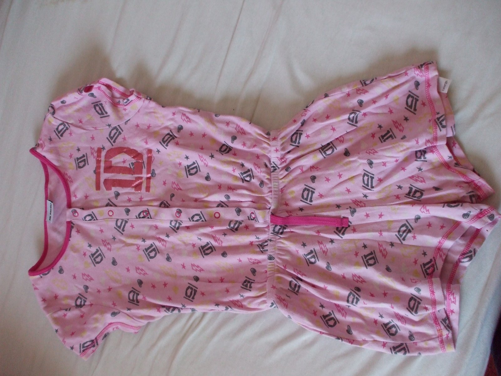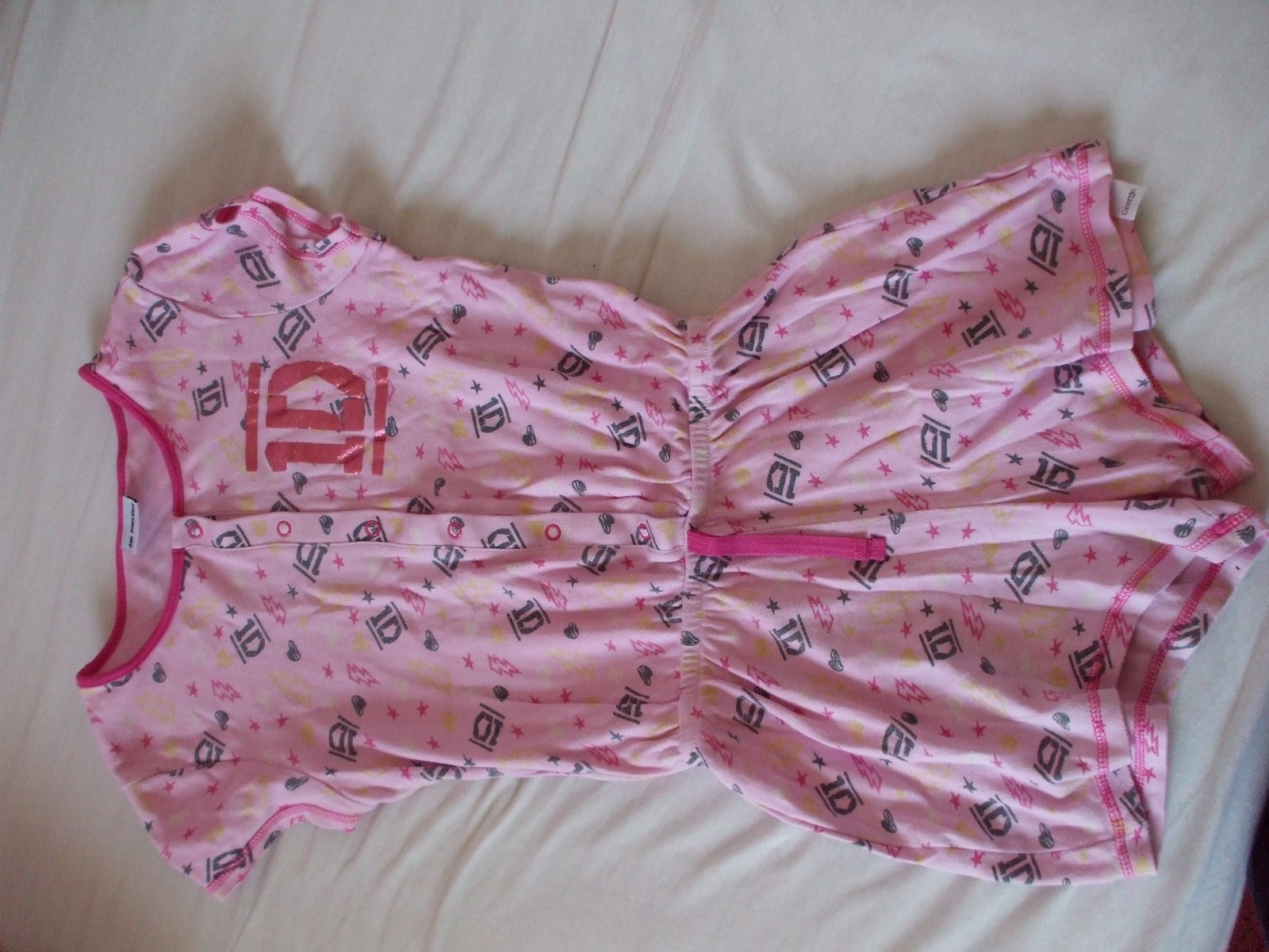 8bk/7B ruzovej farby s potlacou,Bežny noseny stav bez vyblednutia,dier ci flakov sirka33-40 dlzka66po pas43