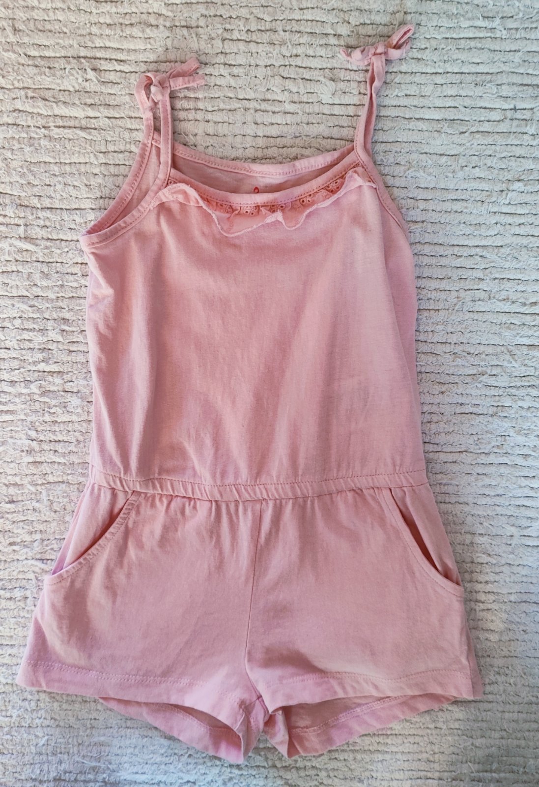 Roztomily riflovy overal pre dievcatko je v top stave, ako novy. V pase je na gumicku, po bokoch ma dve vrecka a v predu styri ozdobne gombiky. Material: tenka 100% bavlna. Dlzka: 44cm Sirka hrud:...