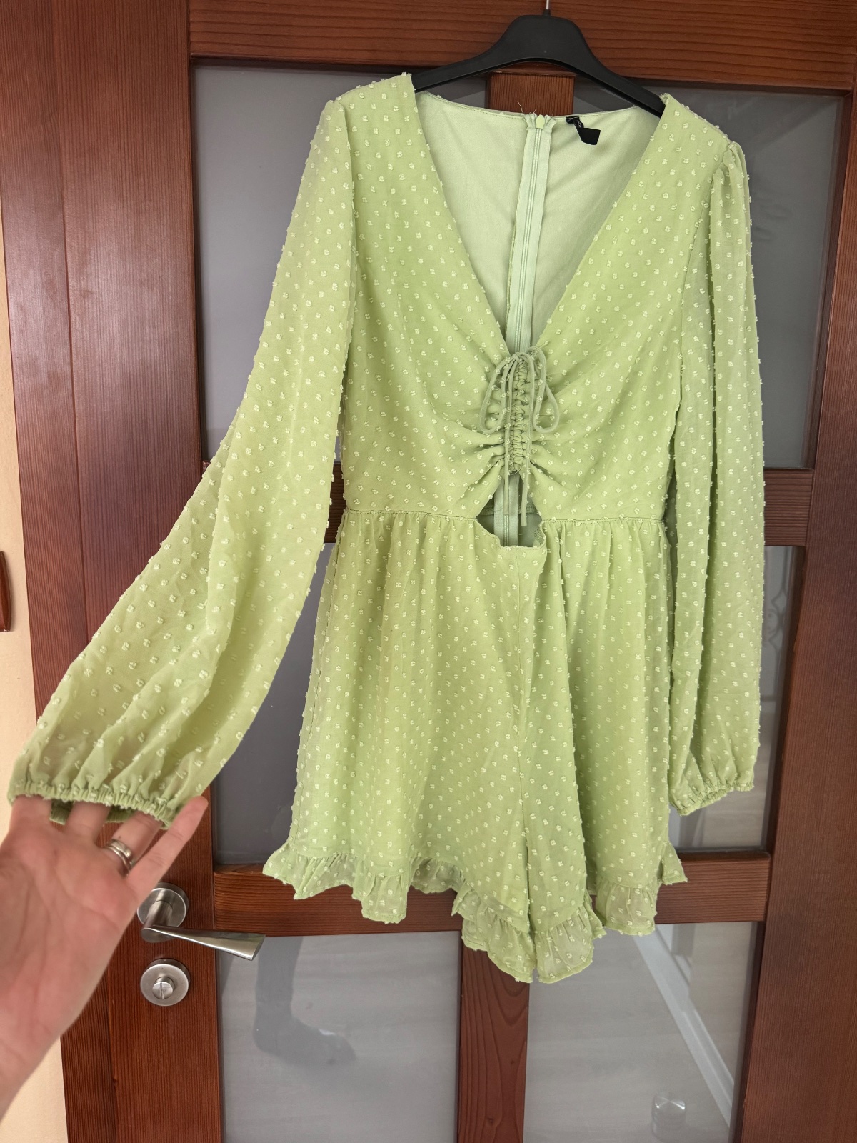 Predám krásny zelený overal, rukávy priesvitné. Krásny na leto, ja som ho nenosila mne ja nosím väčšiu veľkosť. Píše S ale sadne na S aj M