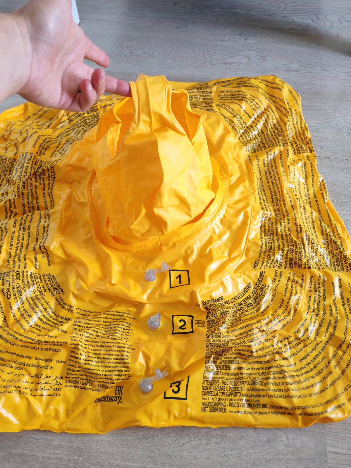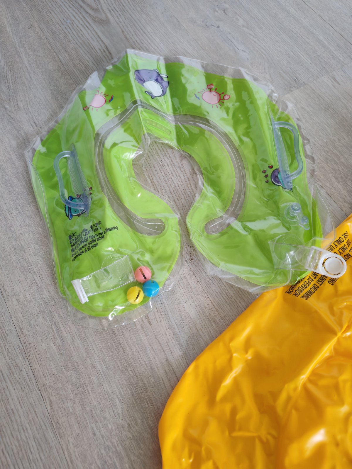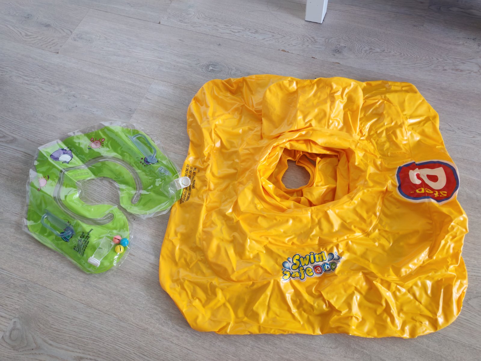 Kolesá do 1-1,5 roka čiže pre tie najmenšie deti. Obe kolesá sú v top stave, nefučia, boli použité asi 3x. Jedno je klasické na sedenie a druhé je okolo krku, že dieťatko má telíčko celé vo vode. Za nás super vec. Obe spolu 3,50€
