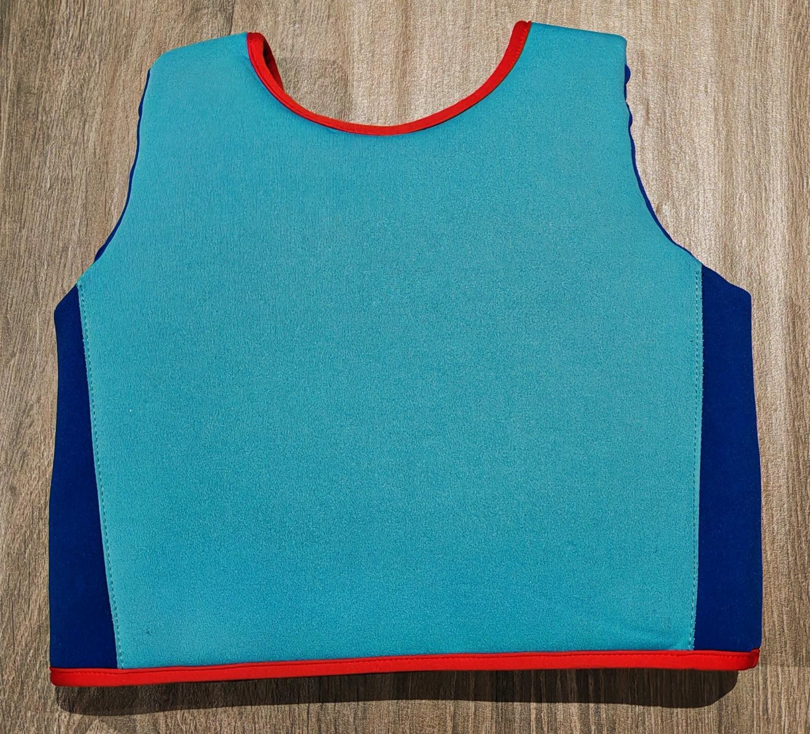 Obsahuje výstelku potiahnutú neoprénom so zipsom, aby si dieťa nemohlo vestu samo vyzliecť.