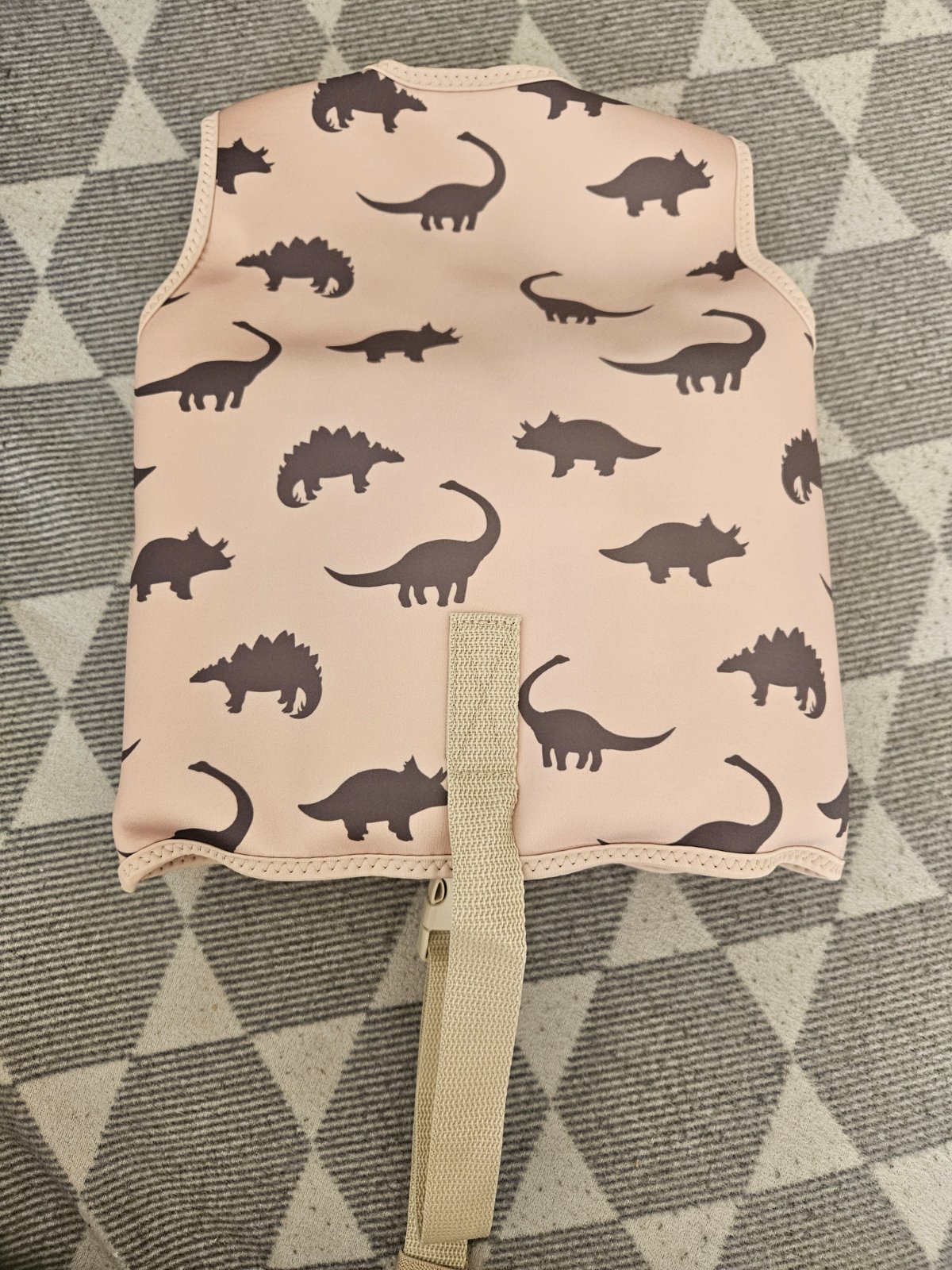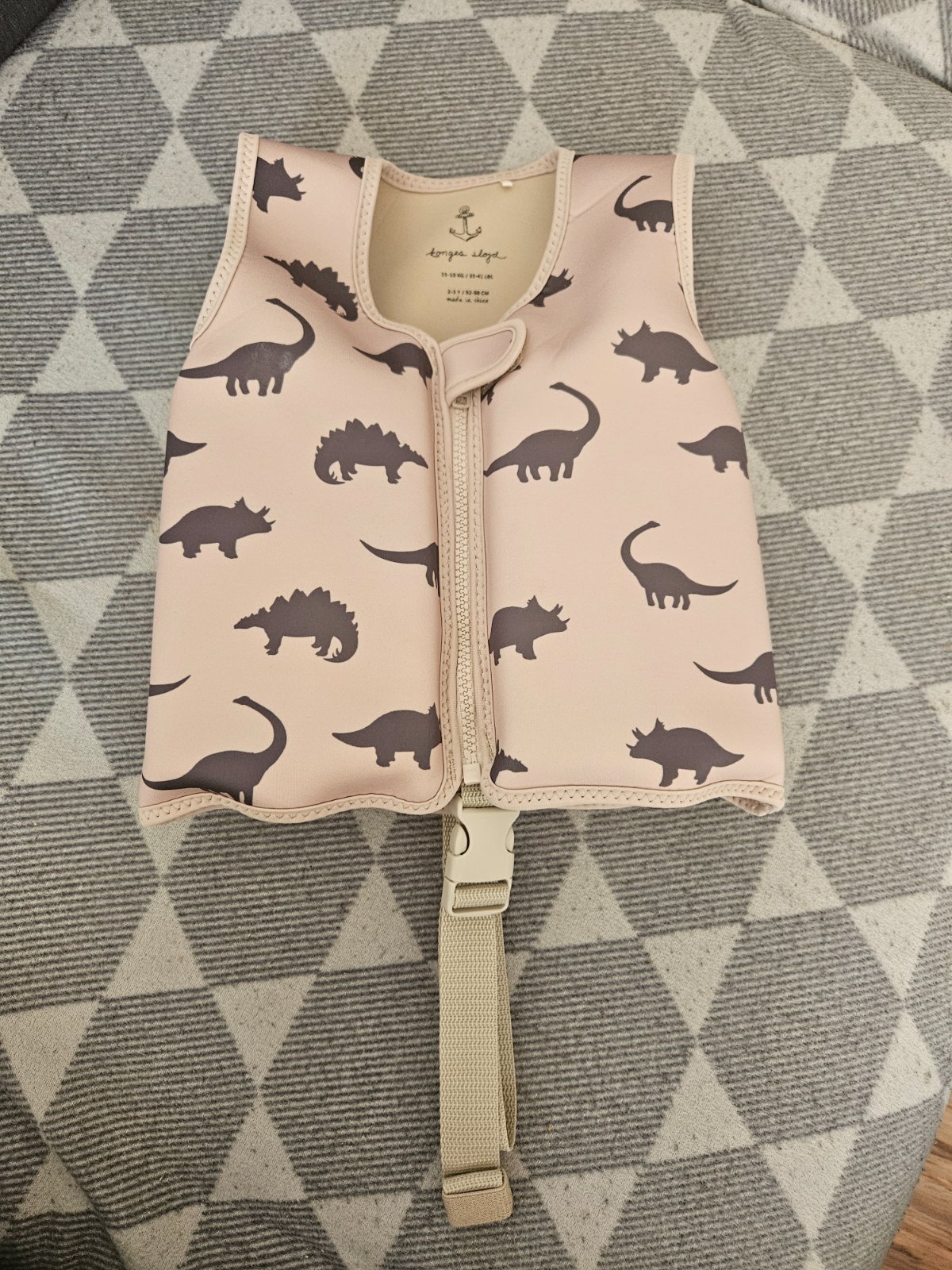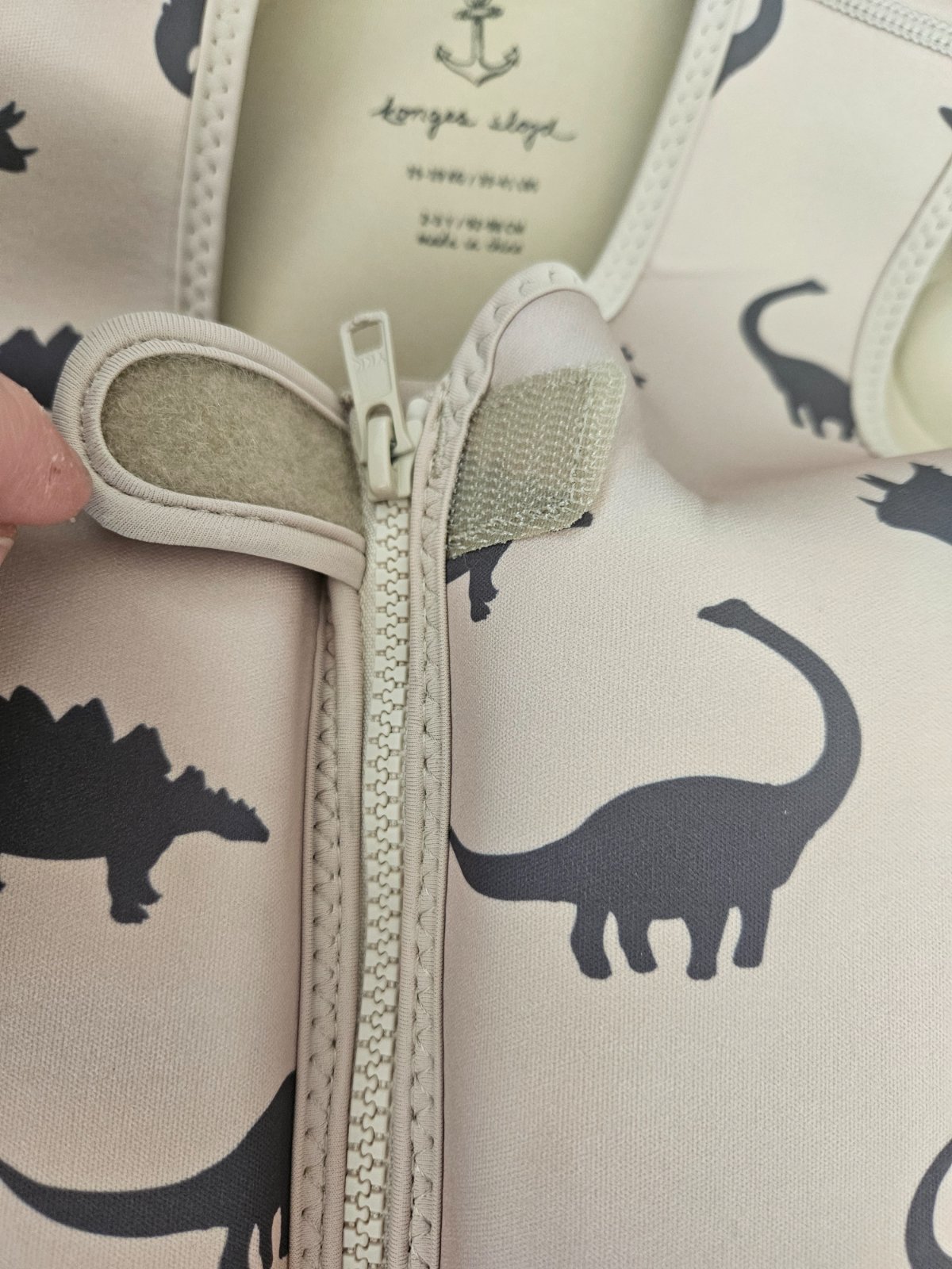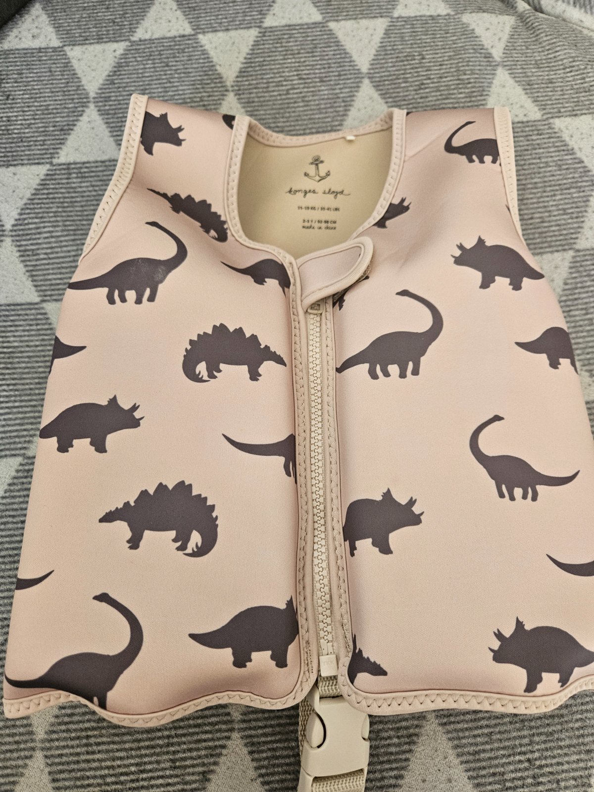 Vesta je na zips, s bezpečnostným pásikom so sponou medzi nohami, aby dieťa z vesty nevykĺzlo. Plaváky vo vnútri vesty sú vyberateľné.