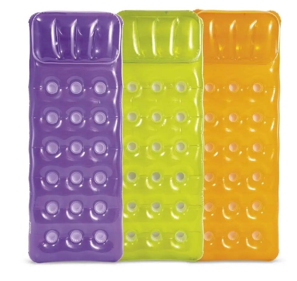 Užite si horúce letné dni pri vode s nafukovacím lehátkom. Veselé farebné prevedenia určite vyčarujú úsmev na každej tvári. V prednej časti je podhlavník pre väčšie pohodlie, kapsičky slúžia ako držiak pre občerstvenie.