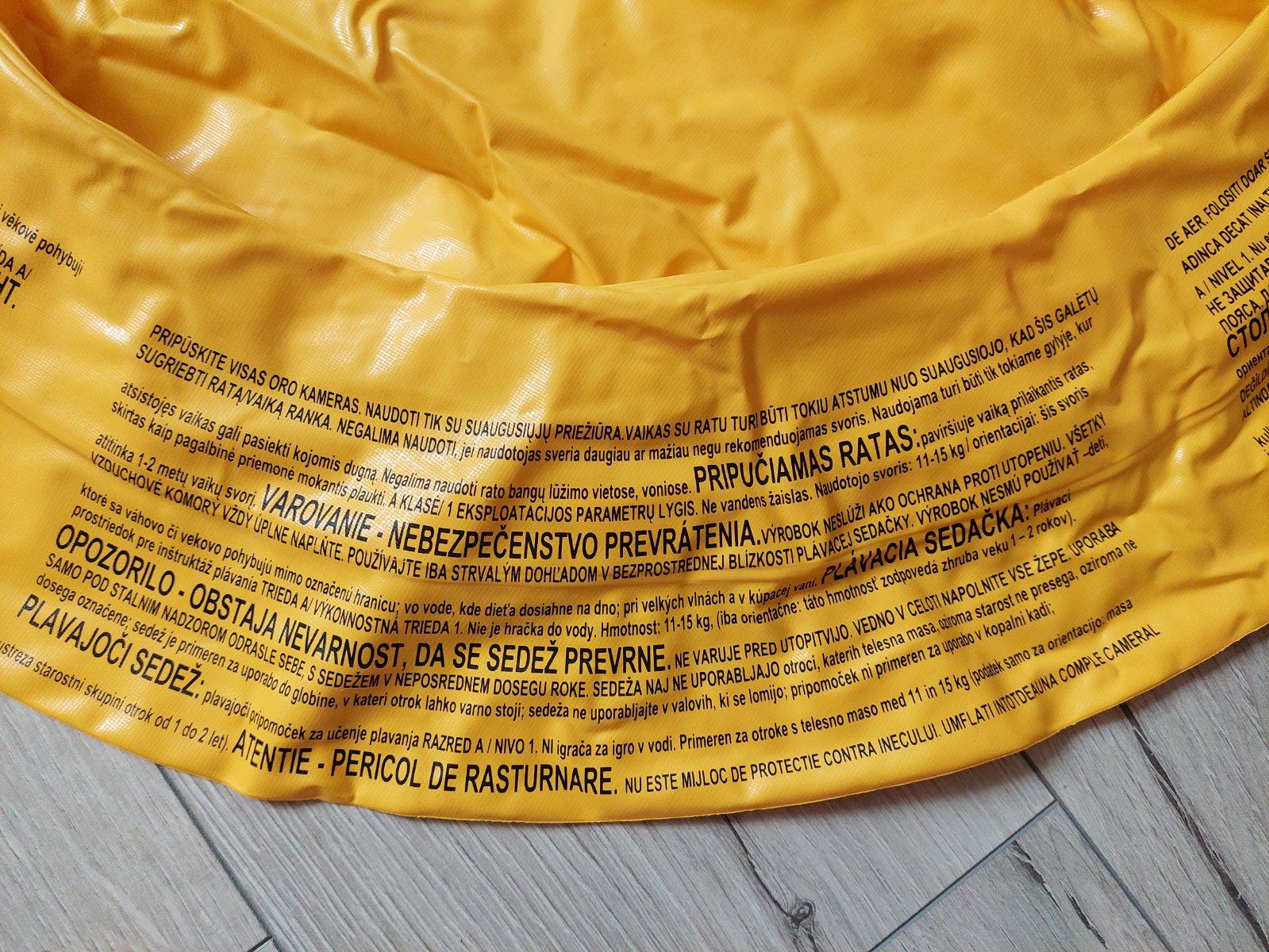Plávacie koleso so sedačkou TRIEDA A. Hmotnosť: 11-15 kg, čo orientačne zodpovedá veku 1-2 rokov.