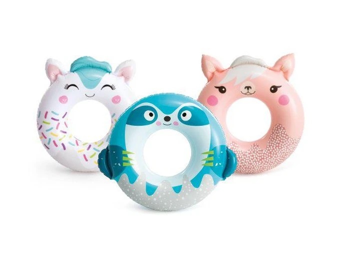 Intex Nafukovacie koleso Cute Animals 59266 v motíve roztomilých zvieratiek. Originálny dizajn podľa vášho výberu. Nafukovací kruh je vyrobený z kvalitného a odolného vinylu s hrúbkou 0,20 mm. Ideálne pre všetkých milovníkov vodných radovánok.