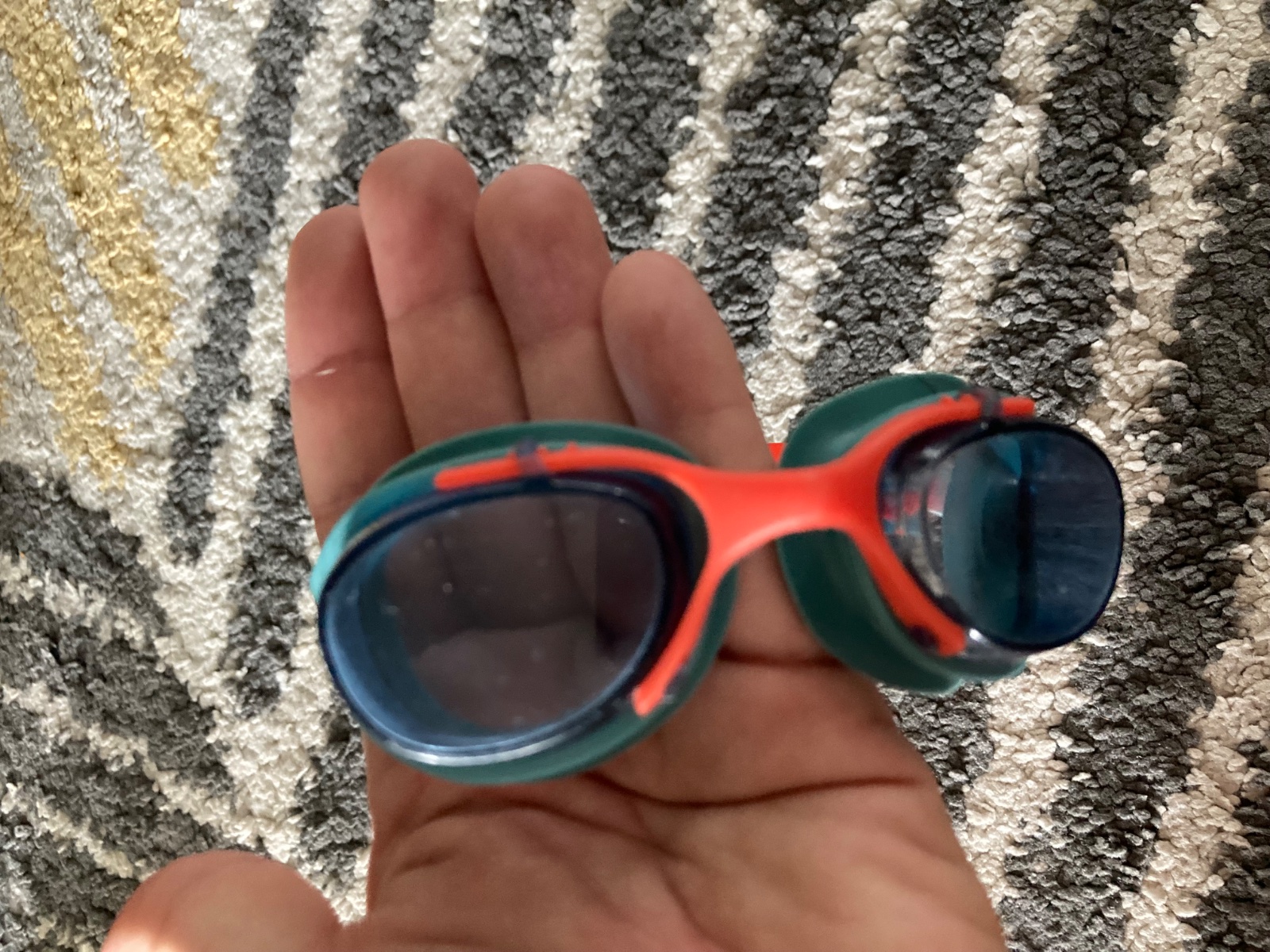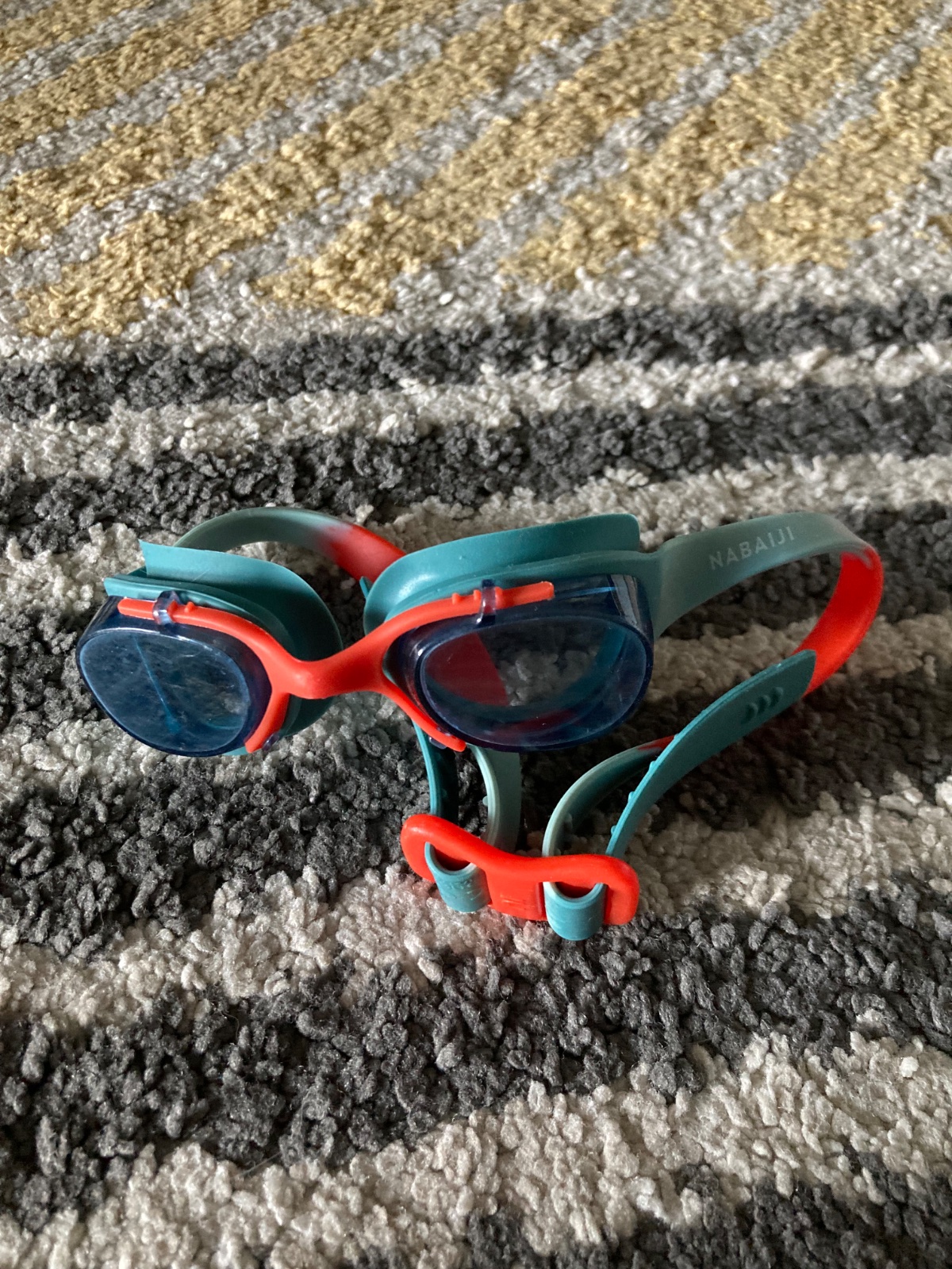 veľmi pekný stav, bez poškodení, kvalitné, cca na 4-7rokov, gumička okolo hlavy sa dá regulovať, značka Nabaiji z Decathlonu, nájde sa škrabanček