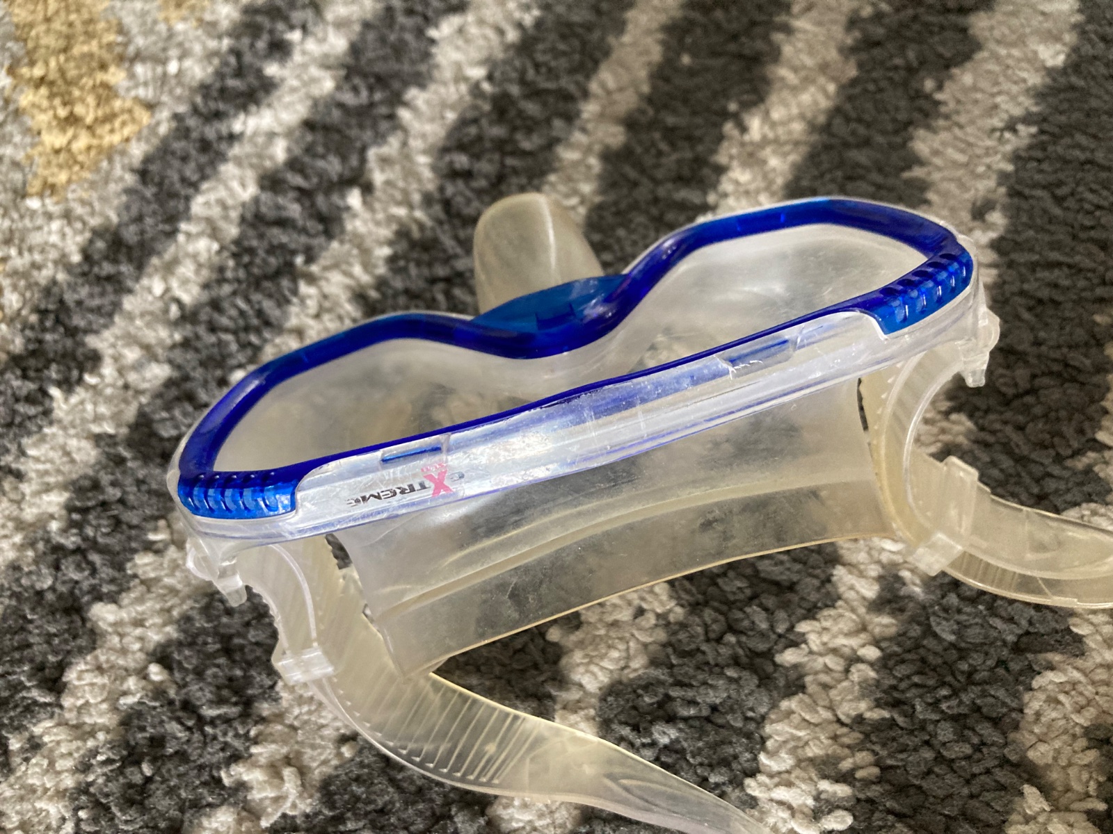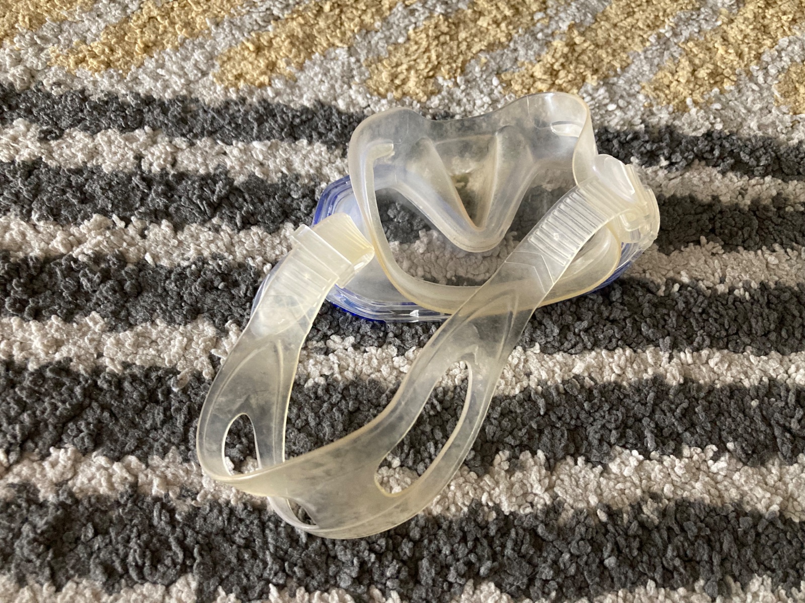 pekný stav, bez poškodení, kvalitné, cca na 3-4 roky, gumička okolo hlavy sa dá regulovať, guma je už ale zažltlá, nájde sa škrabanček a ošuch