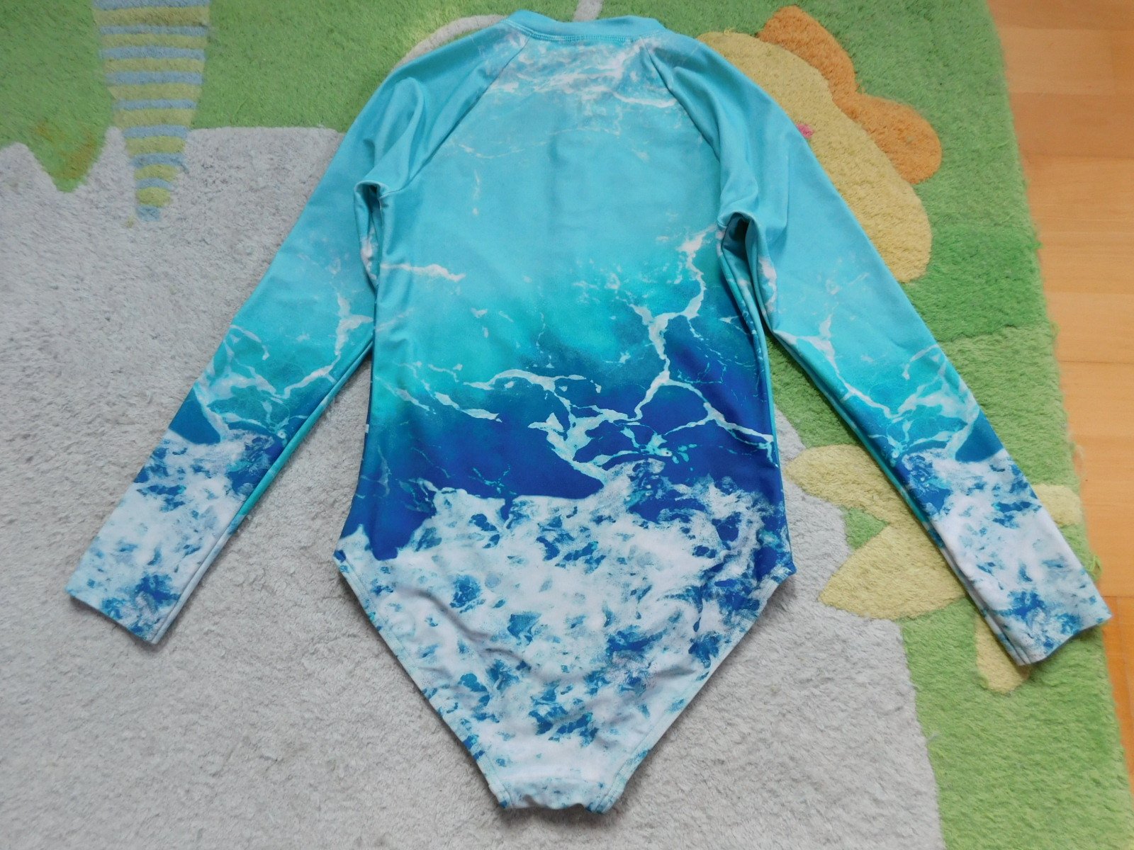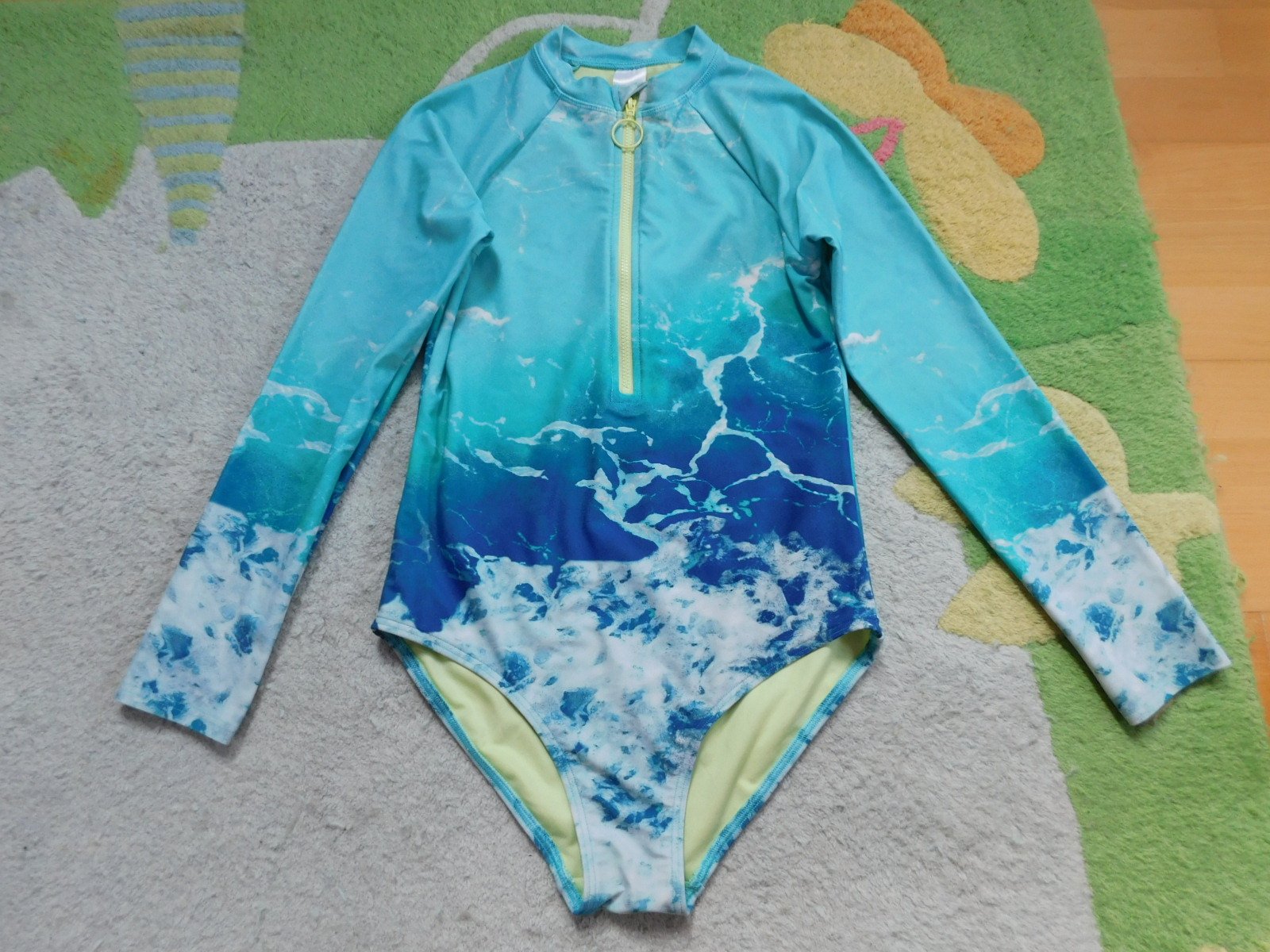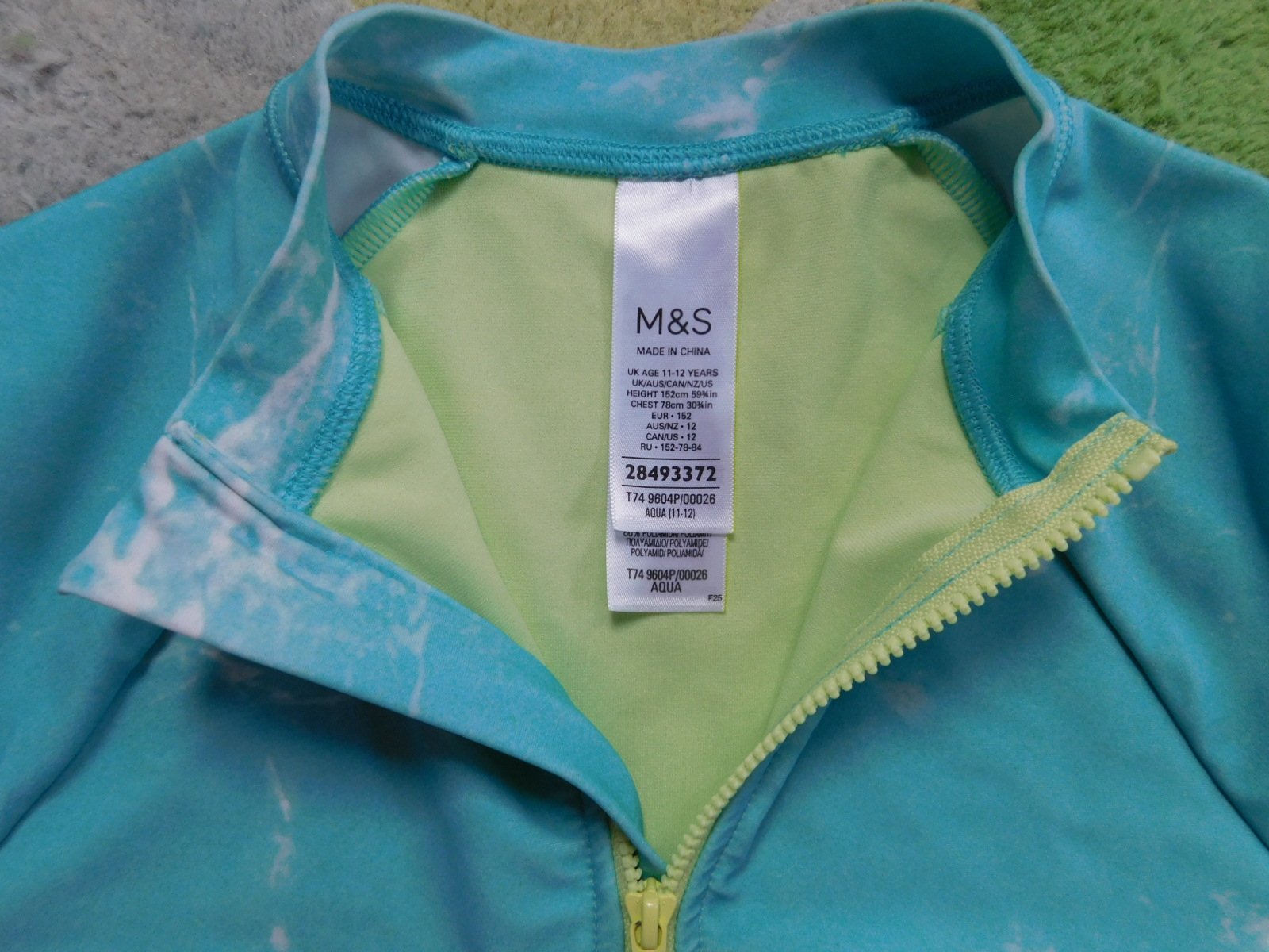 predám plavkový overal do vody Marks & Spencer, na 11-12 rokov, 146-152-ka, v top stave, dĺžka od pleca k rozkroku 62 cm, šírka 31,5 cm, rukáv 57,5 bez lemu na krku, s UV 50+, cena 12,- plus pošt.