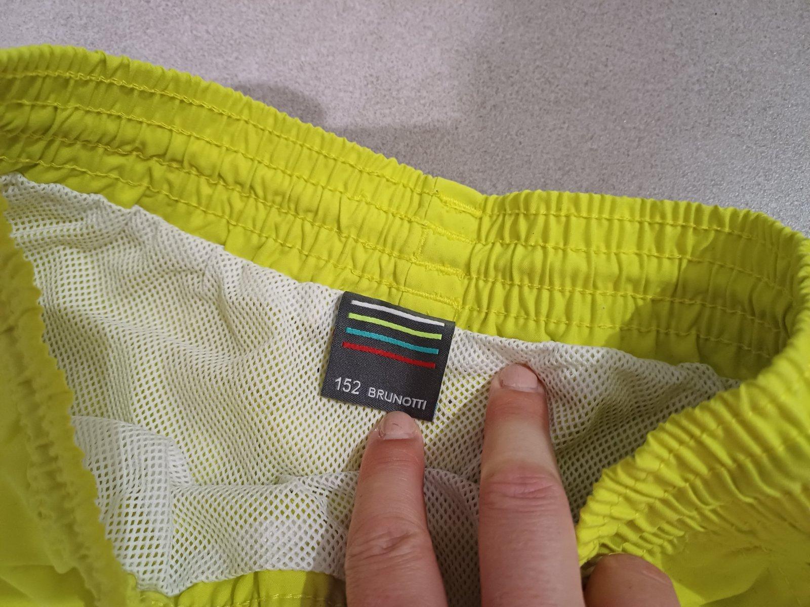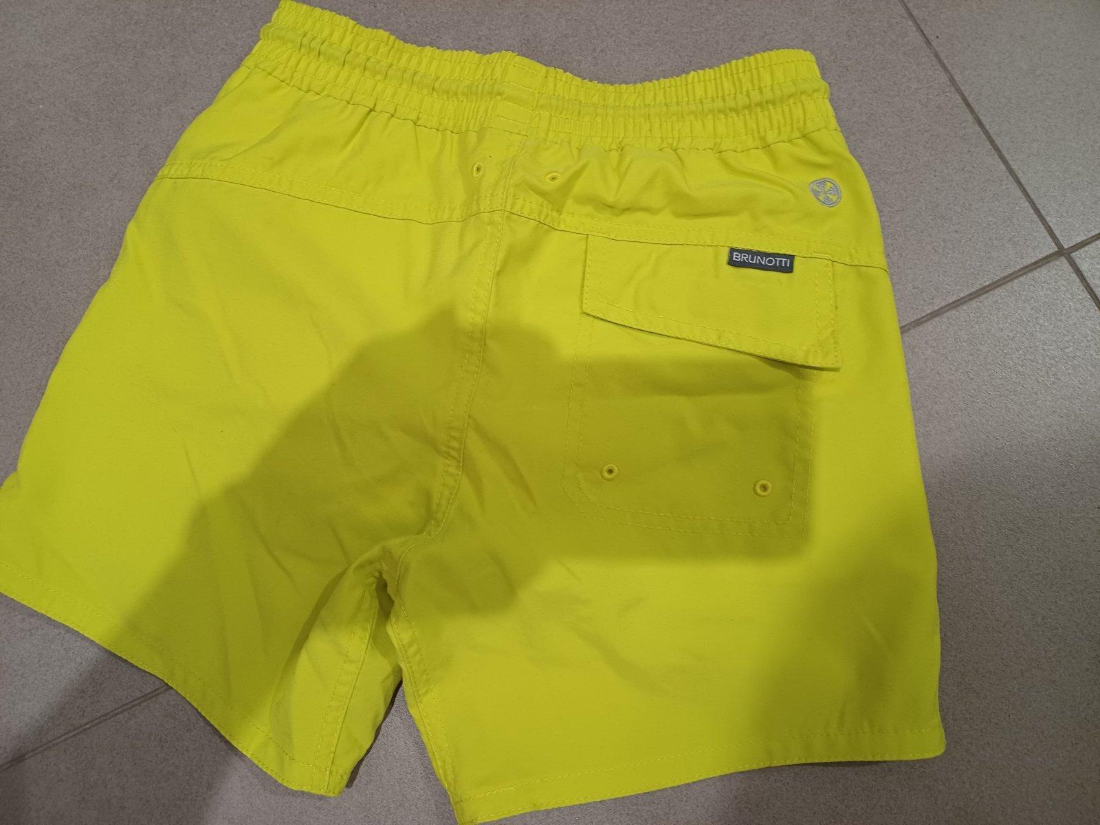 Predám kvalitné plavky Brunotti, bez akékoľvek poškodenia. Žiarivá žltá farba. Uvedená veľkosť 152. Rozmery: šírka v páse v pokoji 2x 30cm plus je možné stiahnuť šnúrkou, maximálna šírka v páse 2x 36,5cm, celková dĺžka 36,5cm.