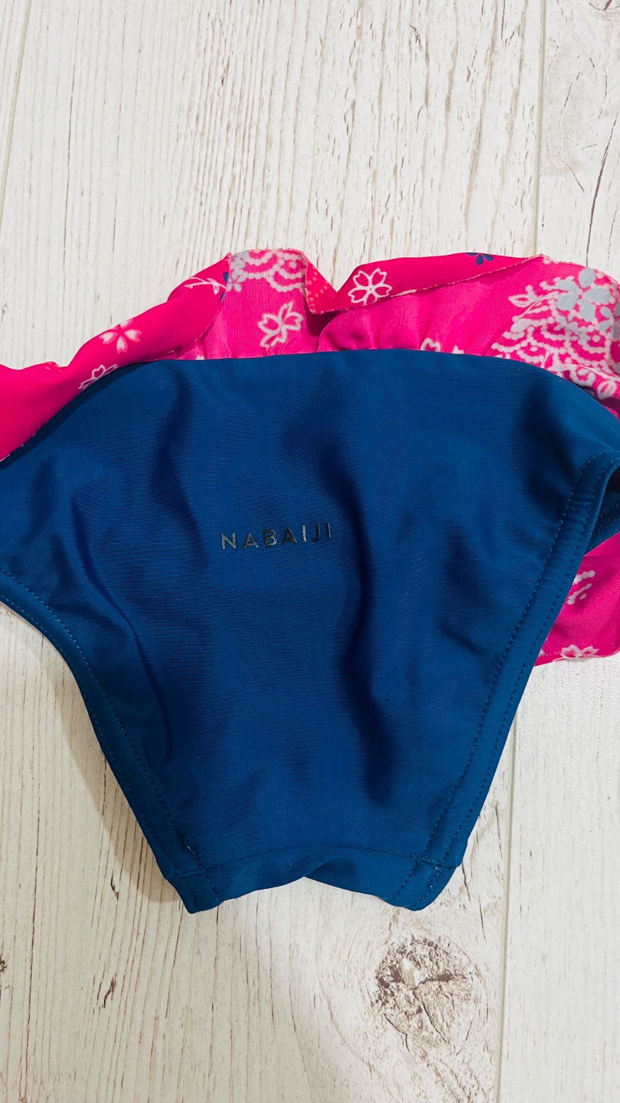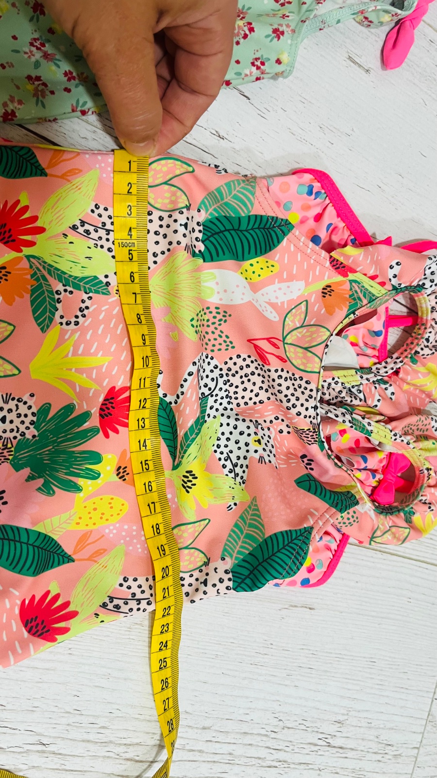 Tyrkysové celé kvietkovane plavky sú jedine troska širšie.