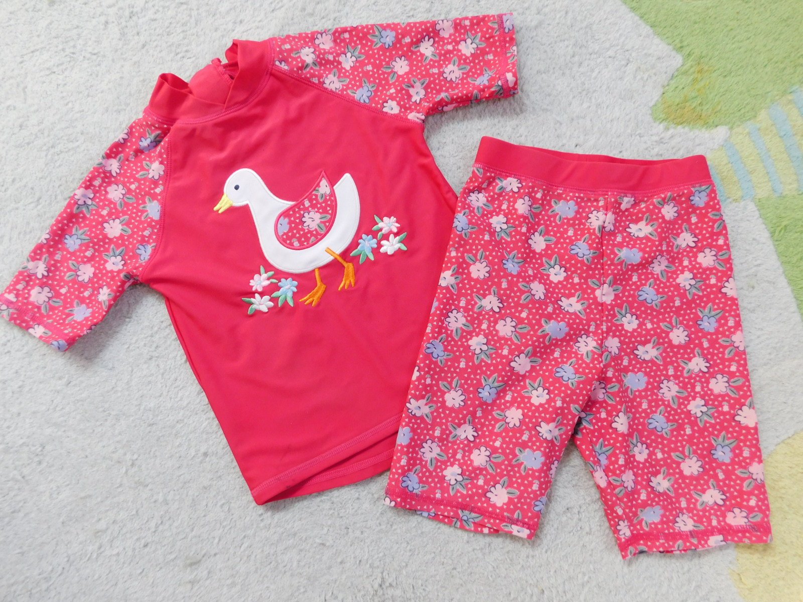 predám súpravu do vody Jojo Maman Bébé, na veľ. 1-2 roky, 80-92, s UV filtrom 50+, v bezchybnom stave, tričko dĺžka 34/37, šírka 26,5, spodok pás 20,5, dĺžka 31,5, cena 10,- plus pošt.
