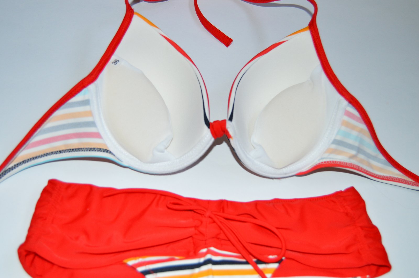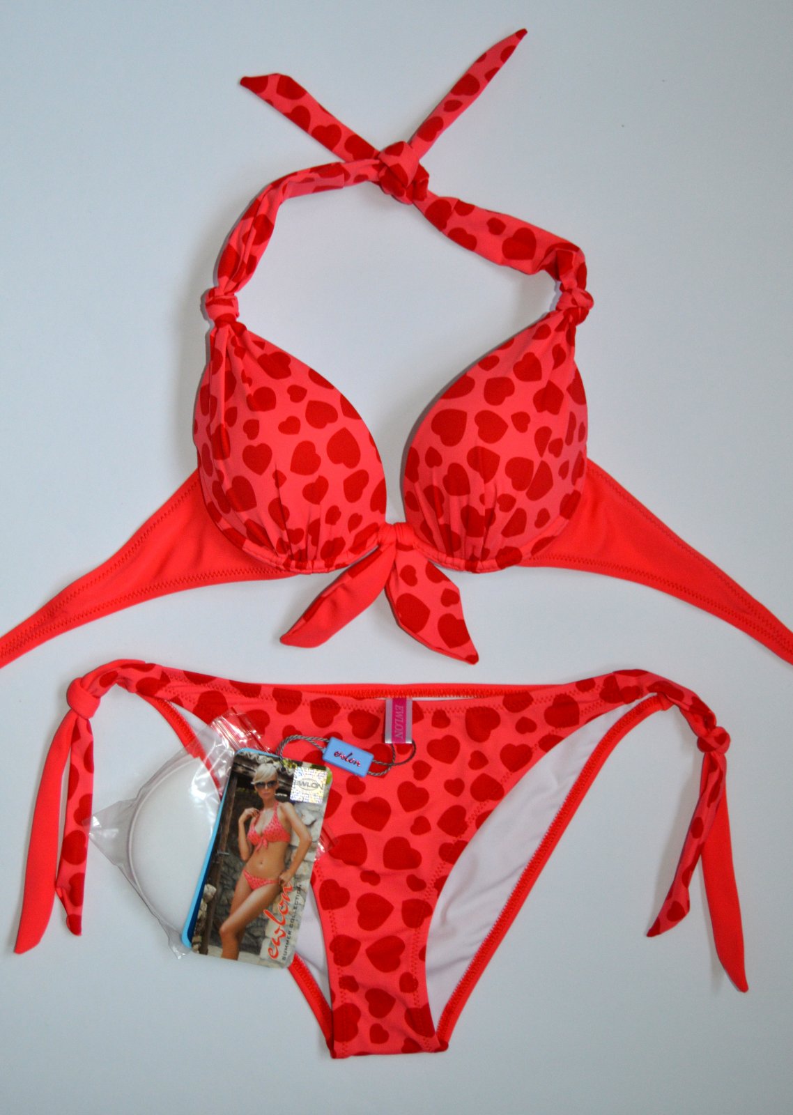 Podprsenka s pevnými košíčkami , v zadu na zapínanie s odopínateľnými ramienkami. Ramienka sa dajú odopínať respektíve prepnúť okolo krku. Podprsenka je vystužená s vyberateľnými vypchávkami tvarujucími poprsie. Odnímateľné výstužné výplne košíčkov.