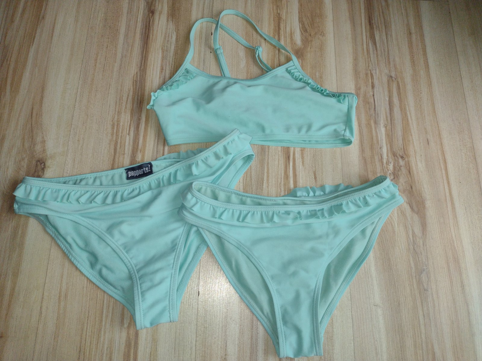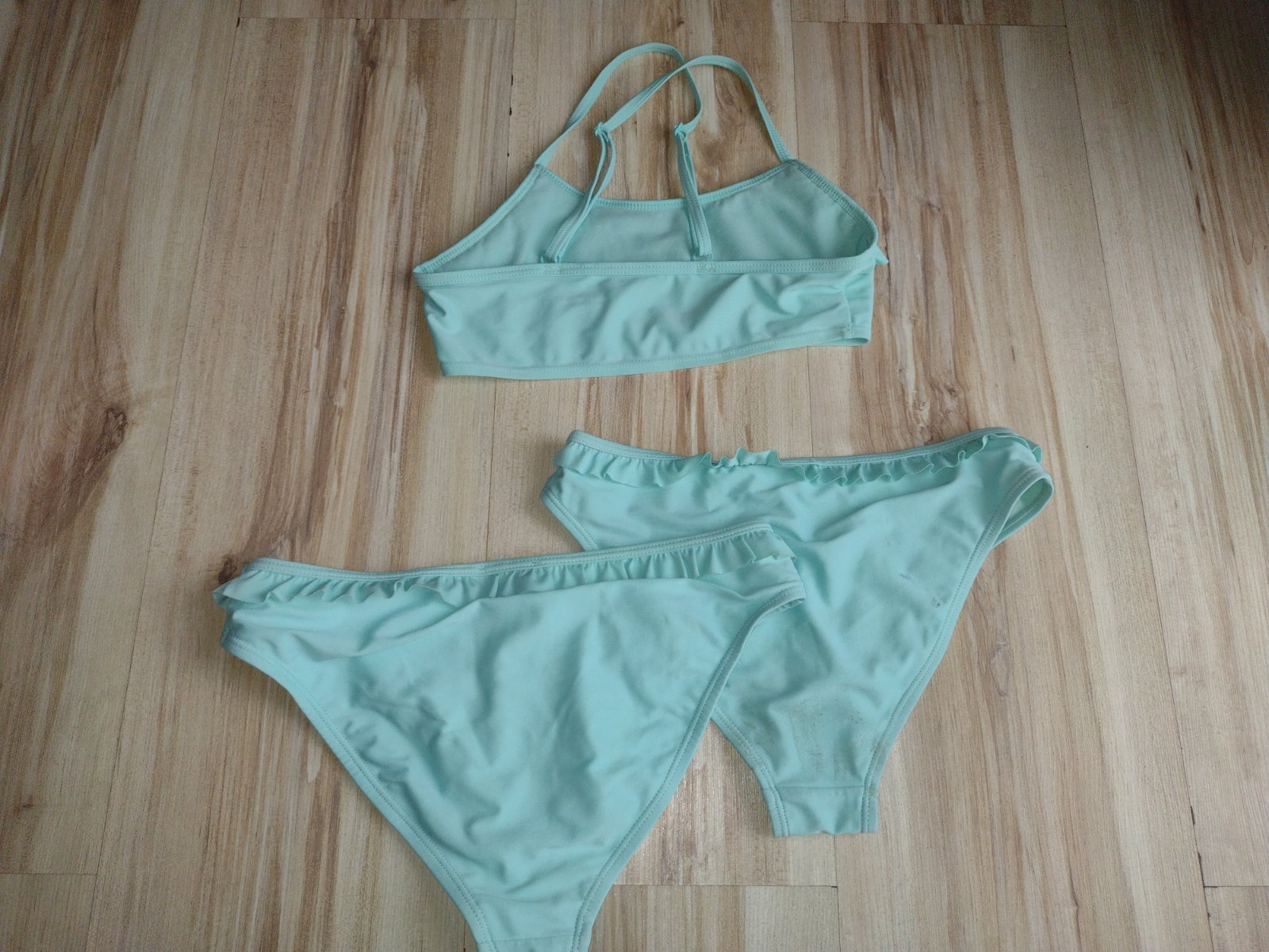 Predám používané dievčenské dvojdielne plavky. Mám 2 ks nohavičiek. Jedny ako nové, druhé používané viac. Kupované v Lidl, štítok som odstrihla. Veľkostne dcéra nosila ako 134/140.