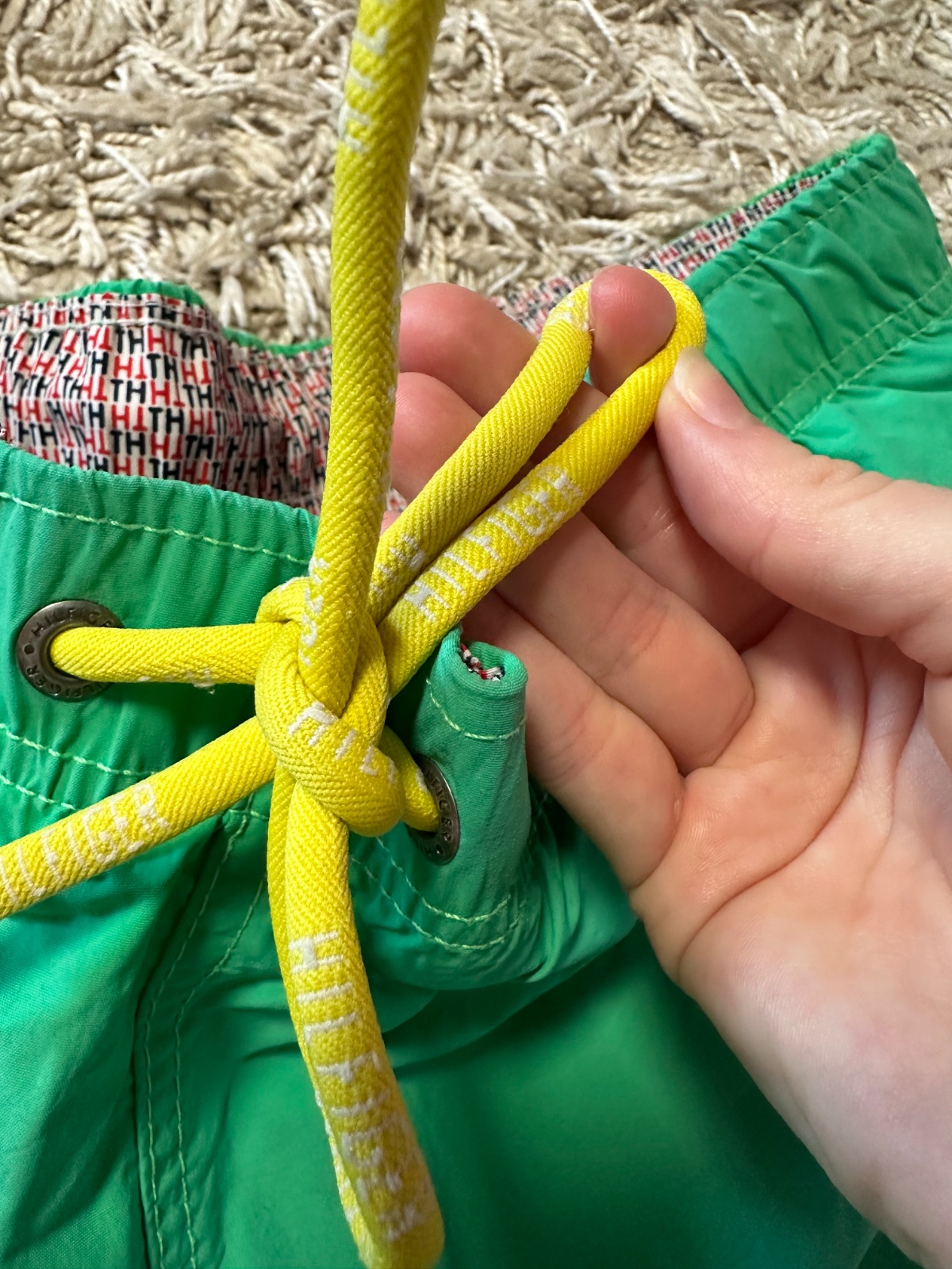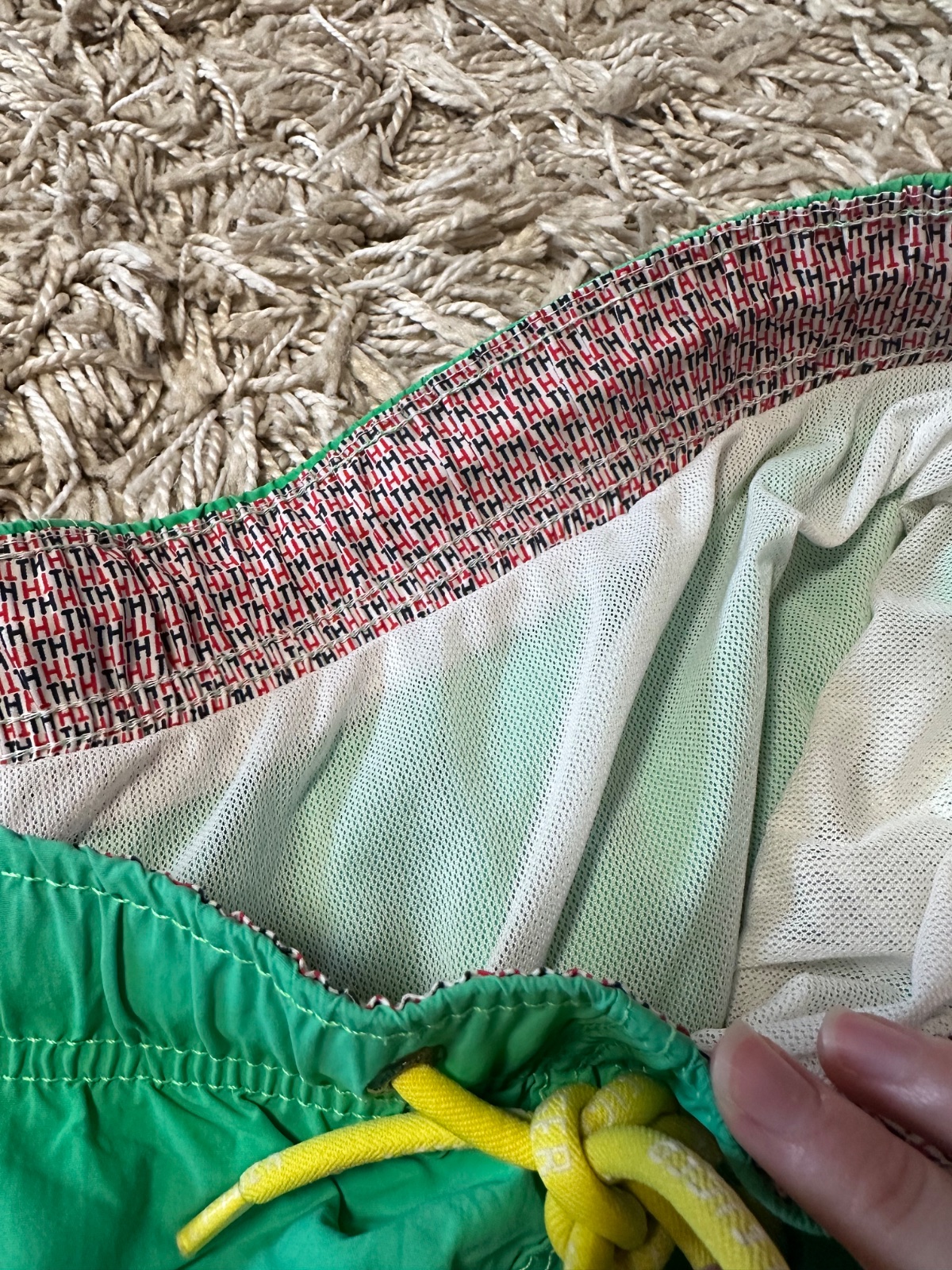 Plavky boli nosené, farba je jemne vyblednutá (vidno na fotkách), ale nemajú žiadne vážne poškodenia – určite ešte dobre poslúžia.