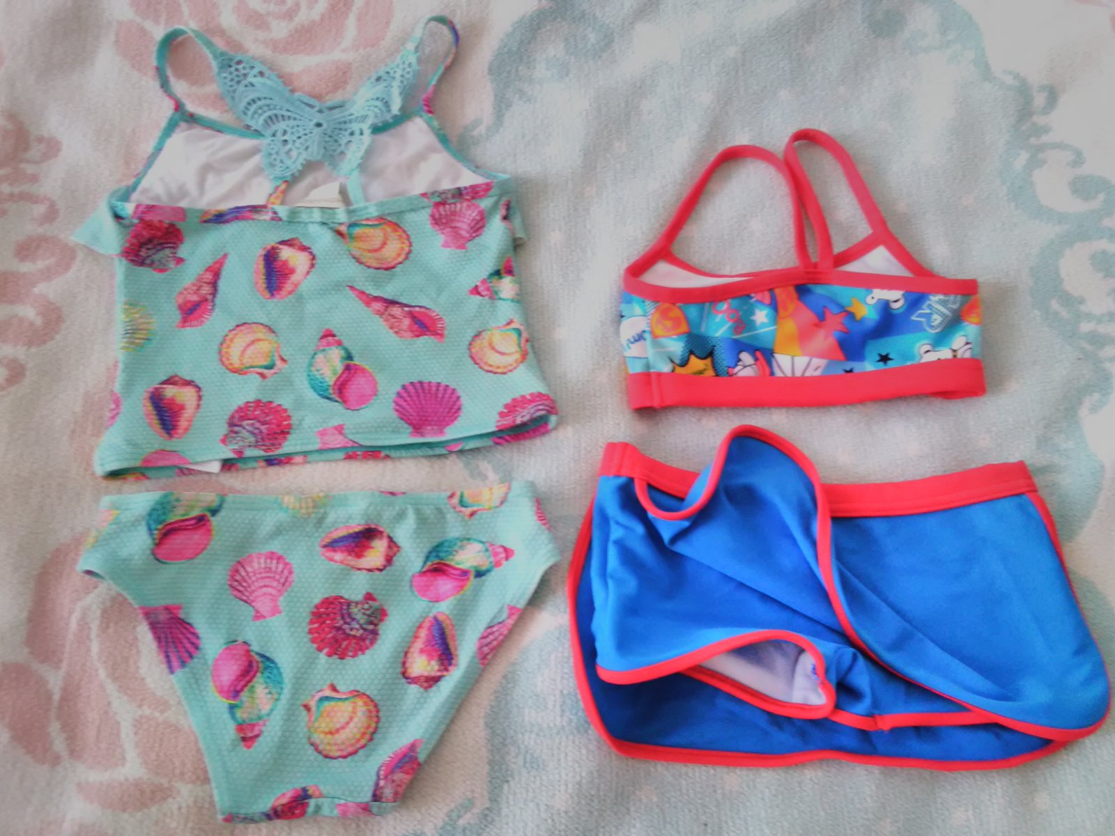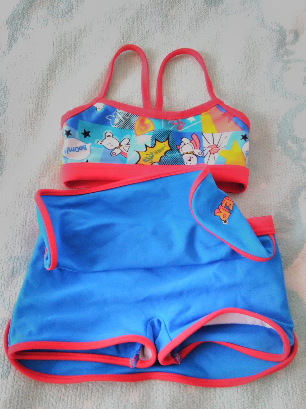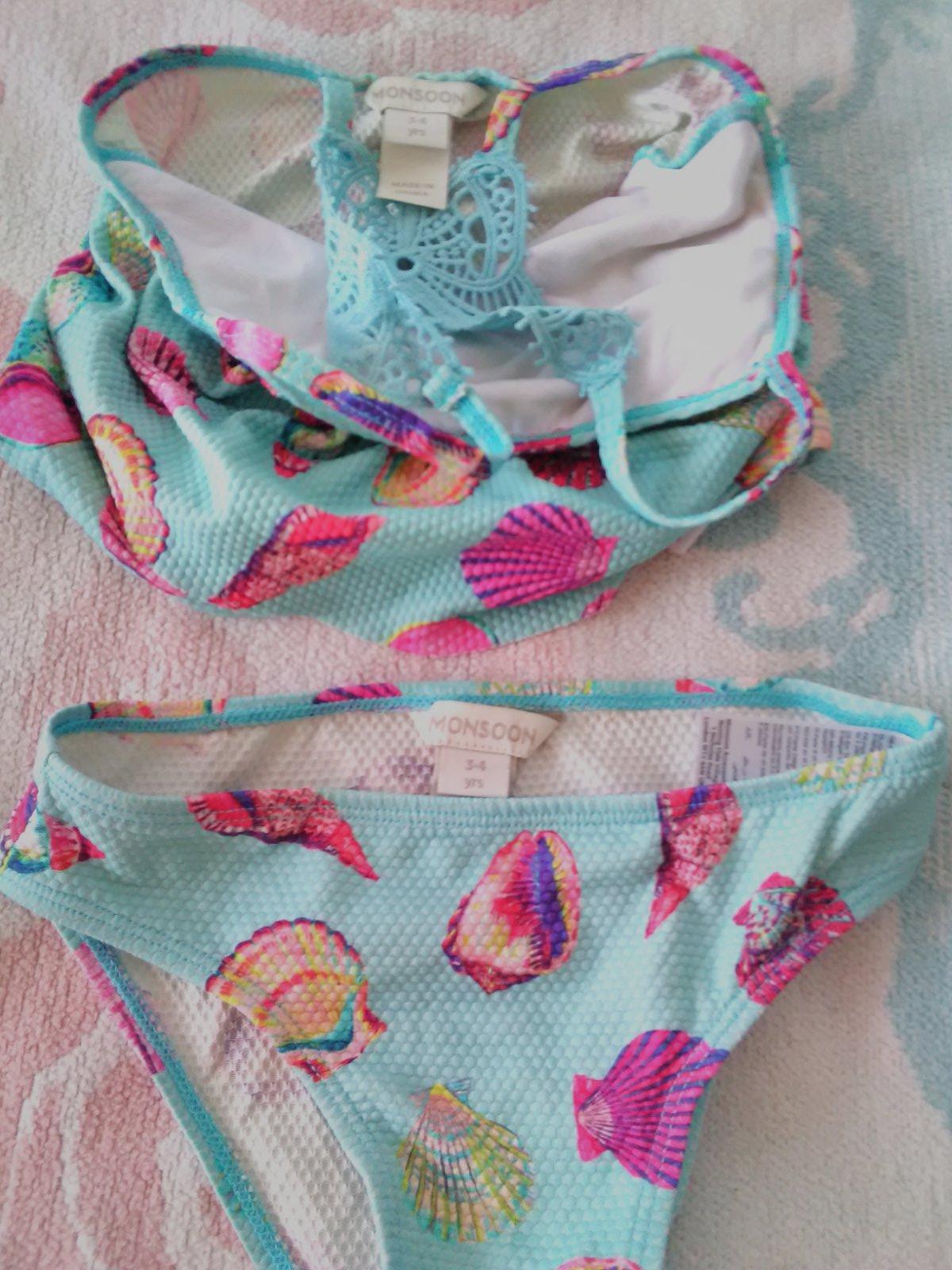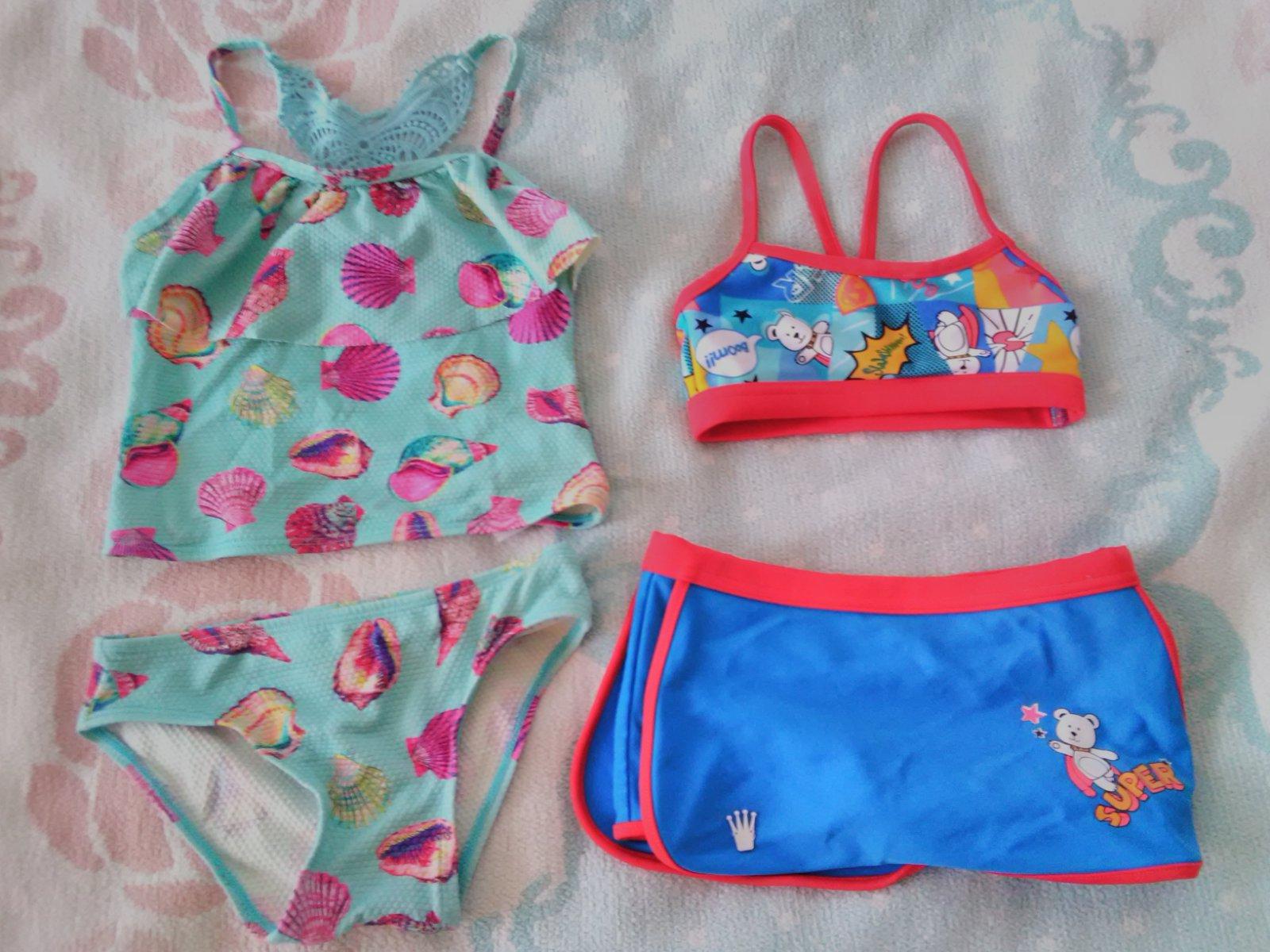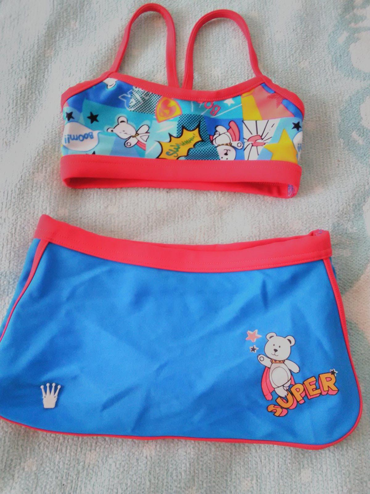 2kusy dvojdielne dievčenské plavky v zachovalom stave. Tyrkysové značka Monsoon veľkosť 3-4roky, materiál je 96%nylon a 4%eelastan. Druhé plavky podobna veľkosť len vrchný diel trochu užší značka Triumph a veľkosť píše XS povedala by som že zhruba na 2-3roky. Materiál je 80%poolyamid a 20%elastan. Cena za obe ale dá sa dohodnúť na kúpe len 1kusu.