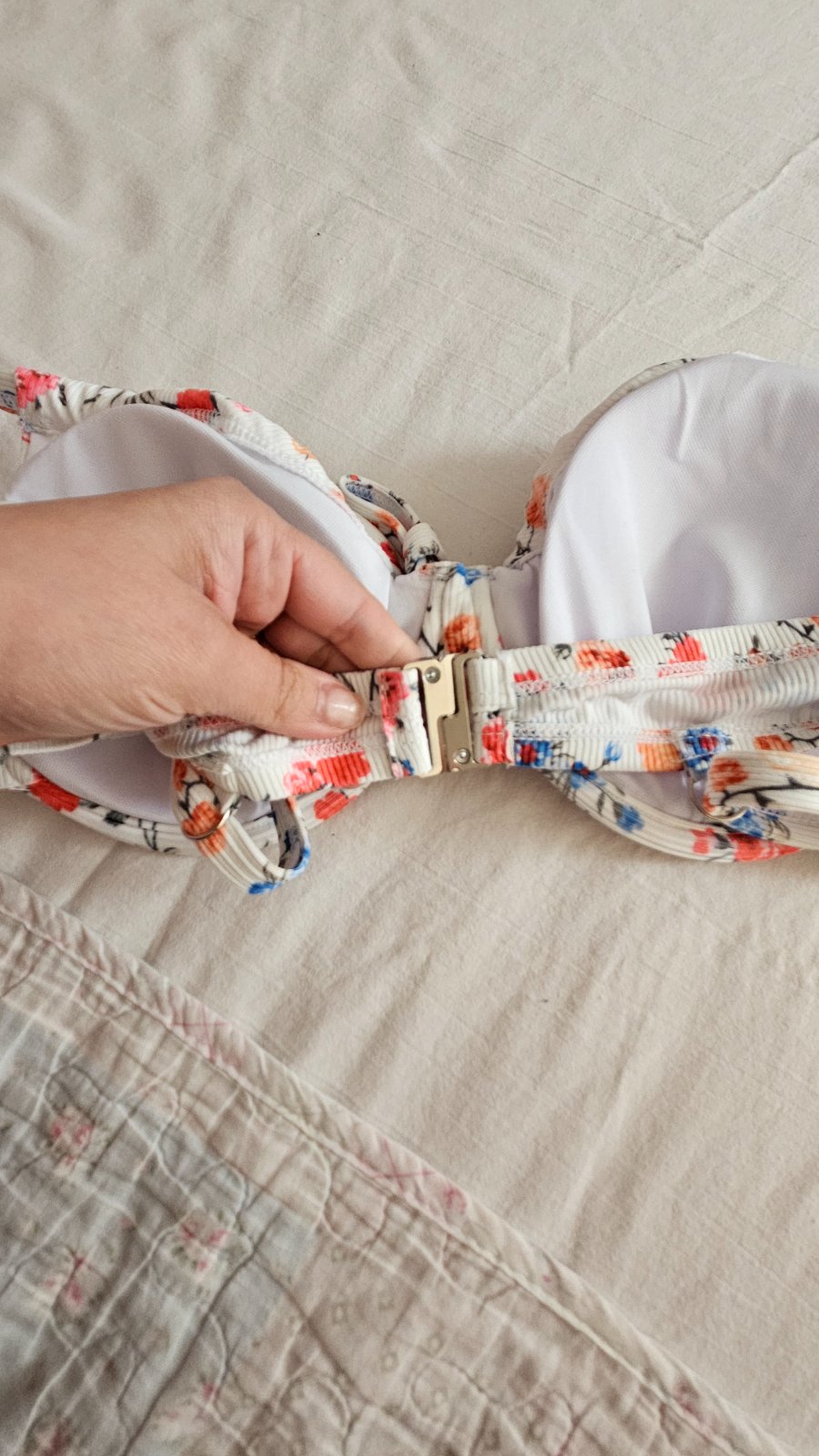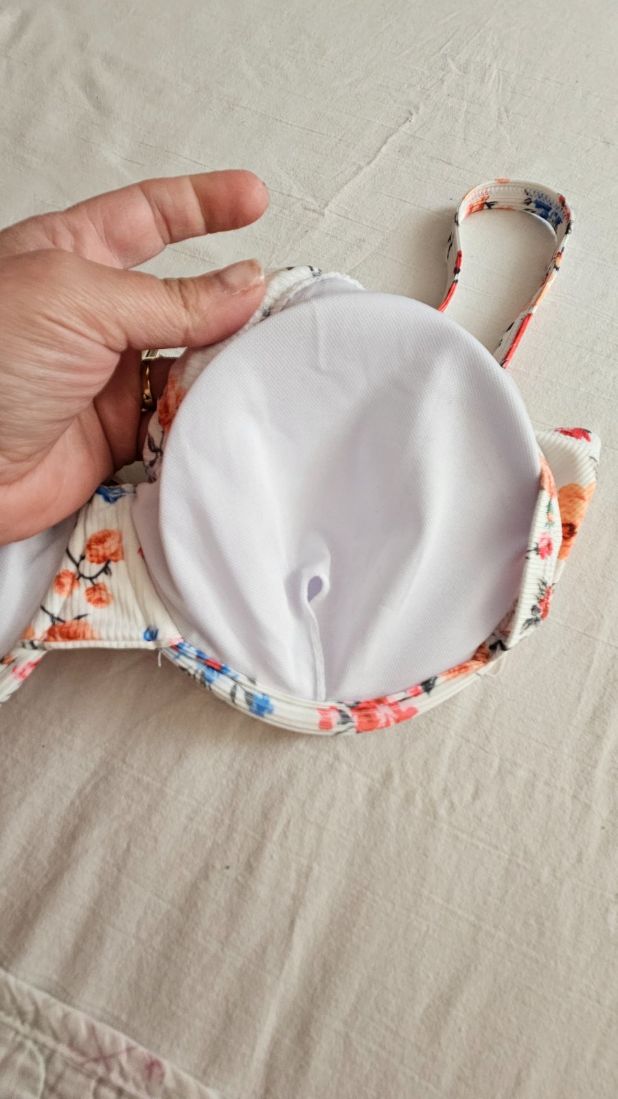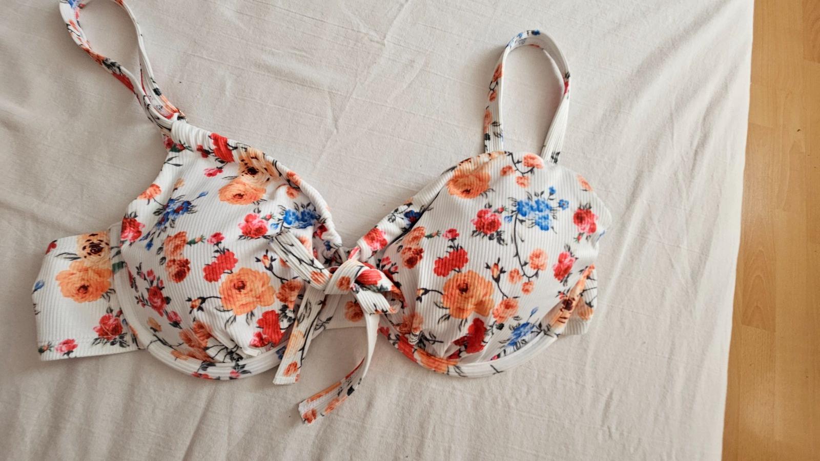 Krásny kvetinový vrch plaviek. Nastaviteľné ramienka a vyberateľné vypchávky.