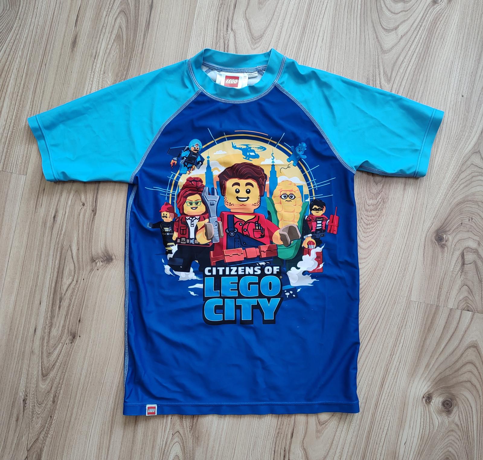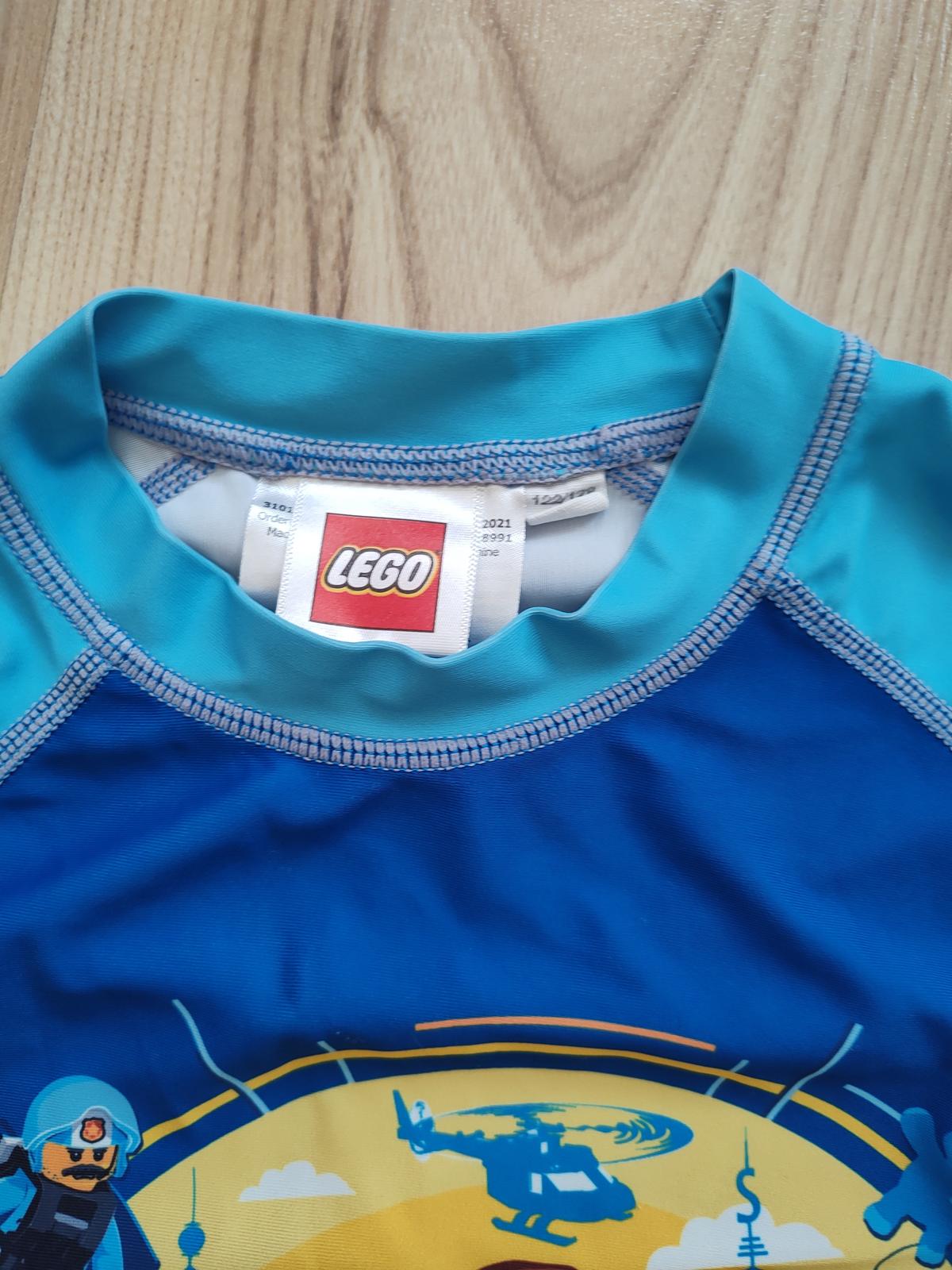 Tričko, plavkový materiál, s okrúhlym výstrihom, integrovaná UV ochrana UPF 50+. Zloženie 85% polyester, 15% elastan. Nosené málo, nepoškodené, perfektný stav. Veľkosť 122/128, dĺžka 52cm, rukáv od krku 26cm, šírka 2x34 až 2x42cm.