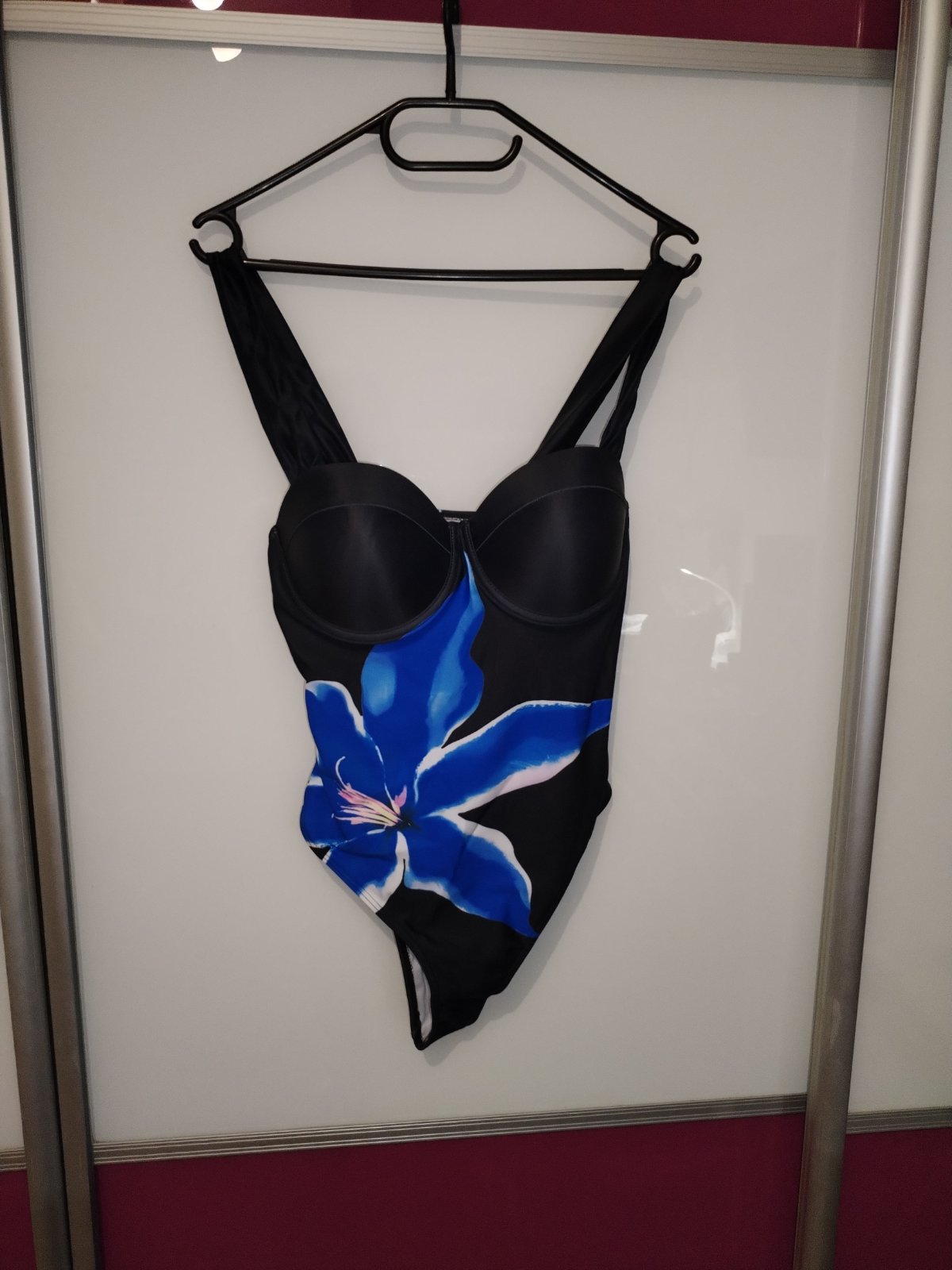 Dámske plavky s lahko vystuzenymi košíkmi a suknou...žiadny push -up efekt...ramienka pevne, širšie...približne veľkosť 38-40...v prípade potreby zmeriam...