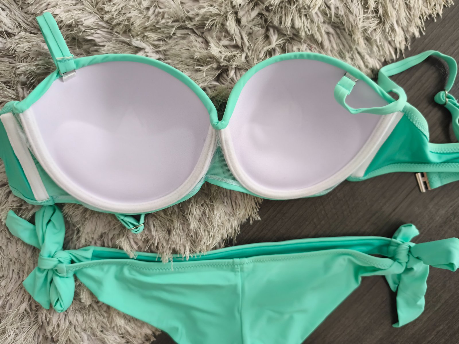Vystužená push up podprsenka s nastaviteľnými odopínateľnými ramienkami na sponu + brazílky s viazaním.