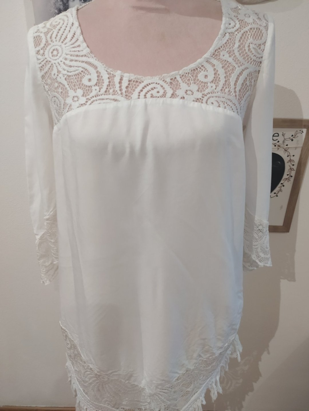 Prekrasne bohemske cipkovane maxi satky na ramienka bez zapinania s odhalenym chrbatikom v maslovo bielej farbe.Lemovanie krasne elesticke,cipka uzasna,vyrazna,vhodne na leto,na plaz,na plavky........