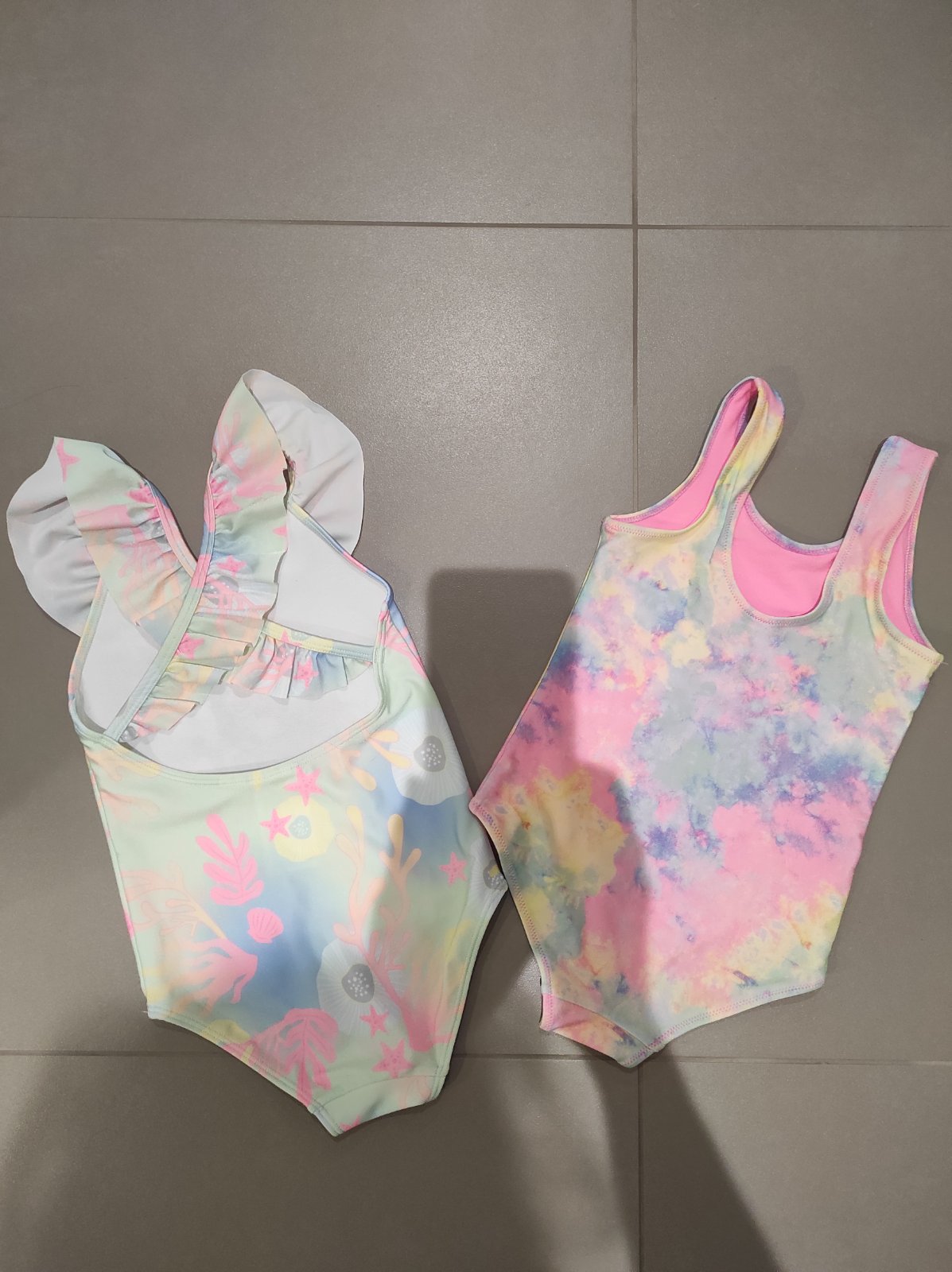 Nádherné plavky s pudlikom, dcéra ich mala asi 2x,mala som jej už väčšie kúpiť, číslo 110/116 z H&M Ružové sú veľkosťou rovnaké Cena spolu