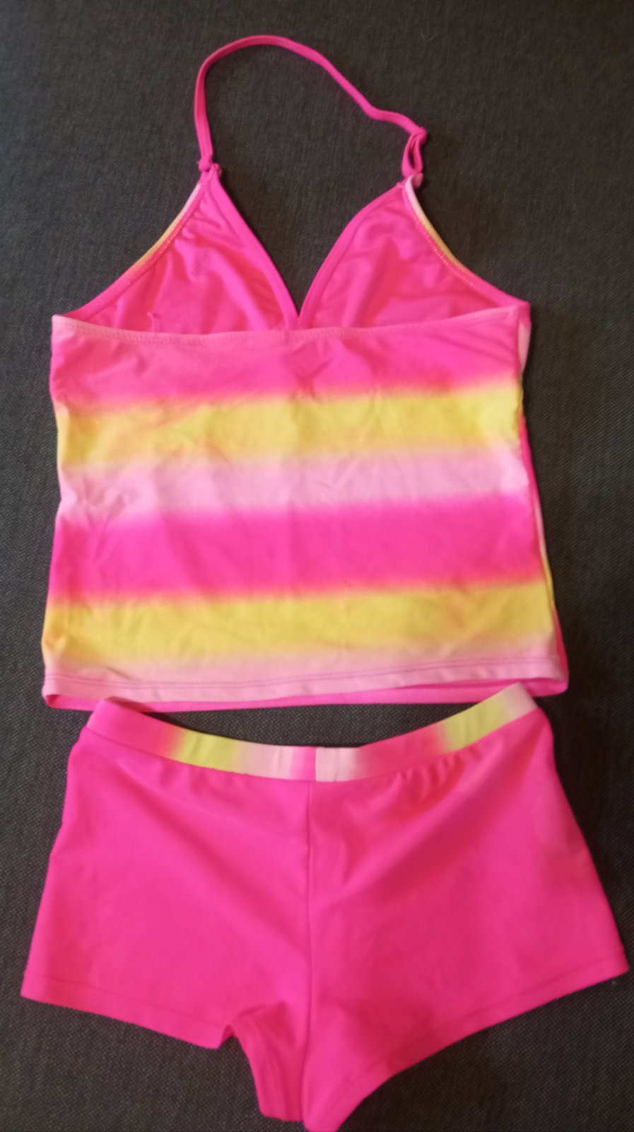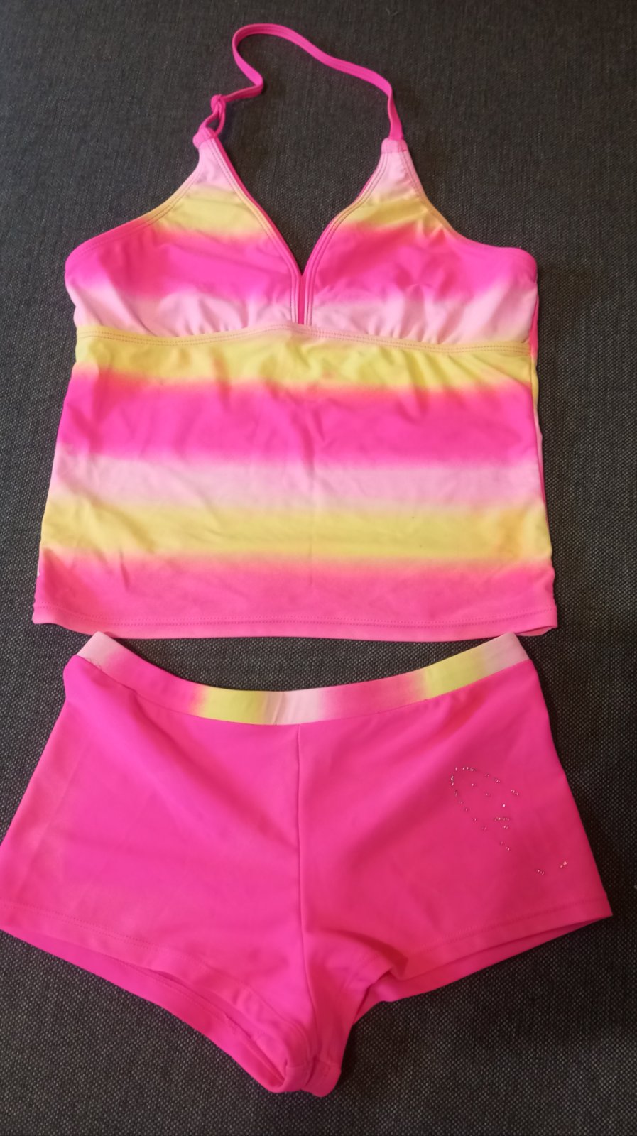 Krásne dvojdielne plavky pre slečnu veľkosť 158/164. Nosené jednu sezónu na striedačku.. jedine pár kamienkov chýba.. kúpené v kik.