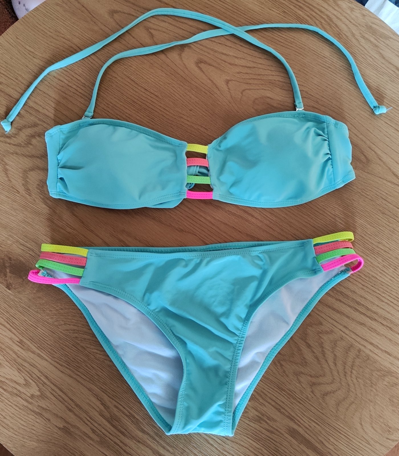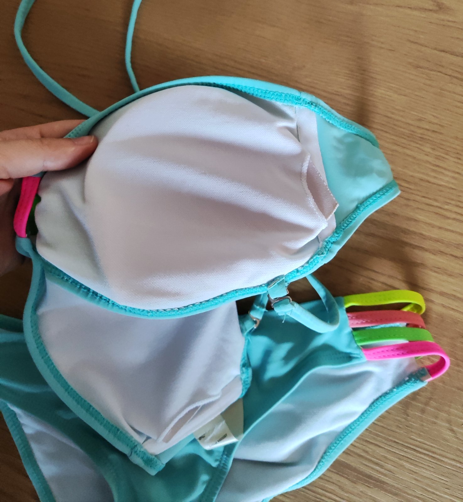 Krásne pásikavé plavky s ozdobnými prúžkami. Veľmi pekne ukážu najmä na opálenej pokožke. Podprsenka má tenkú vypchávku, takže pekne tvaruje. Ponúkam vo veľkostiach M a L.