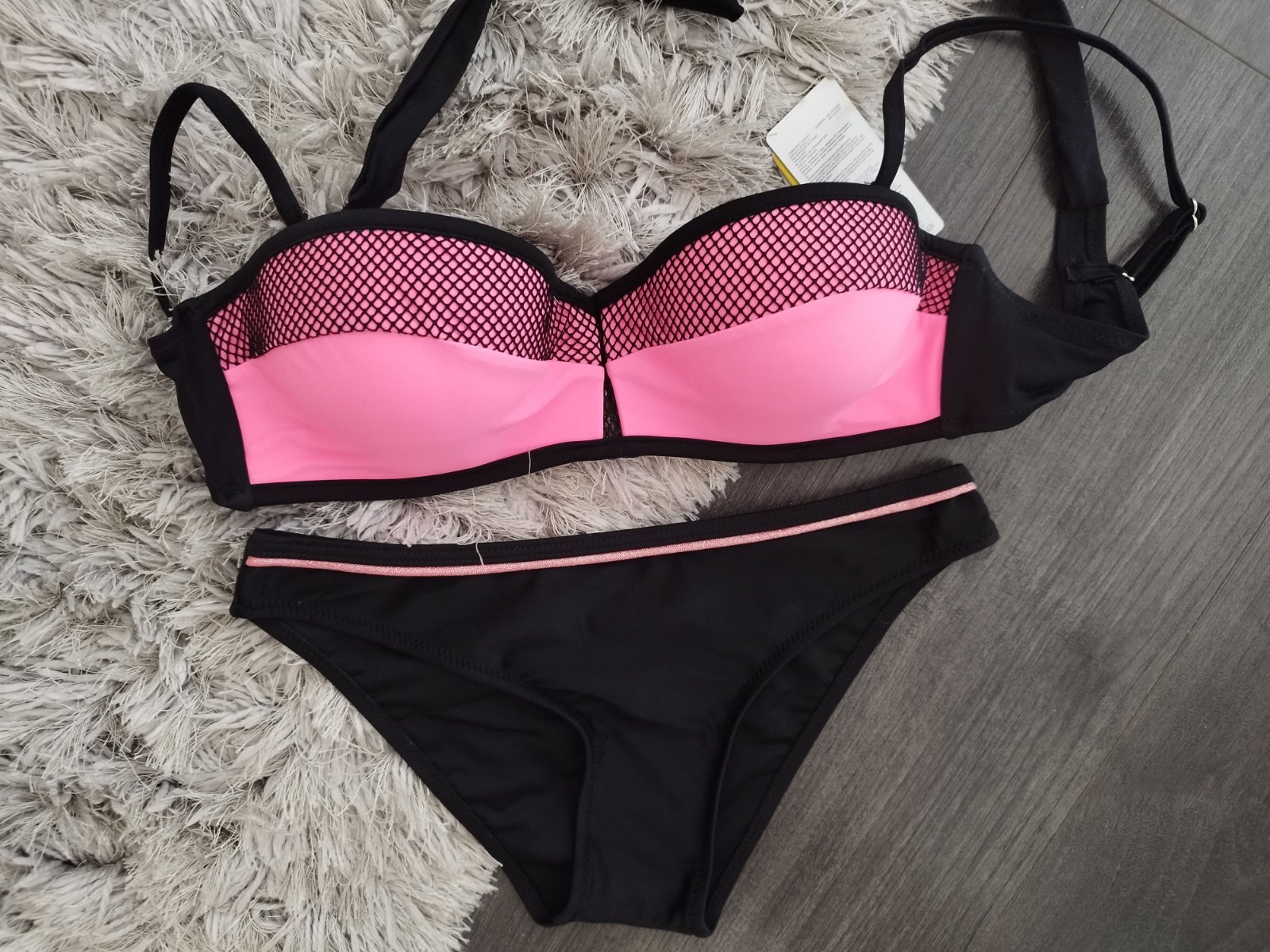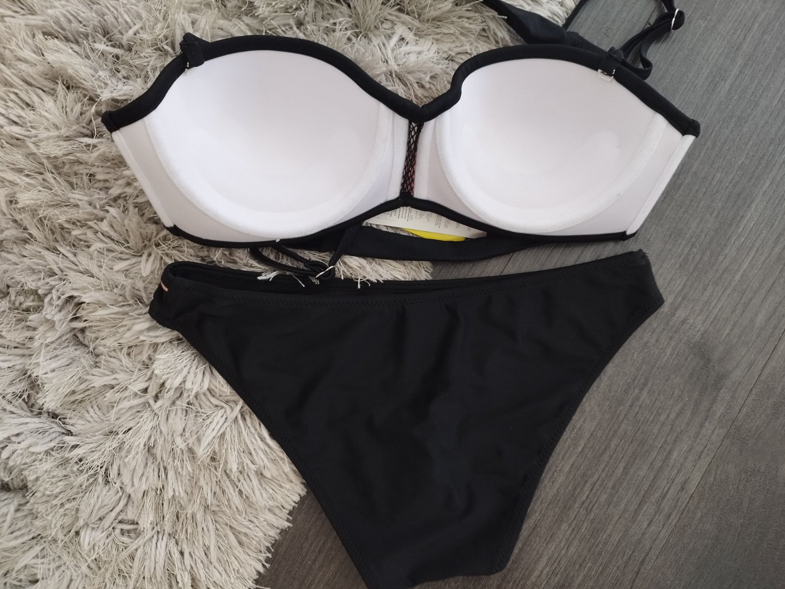 Vystužená push up podprsenka s viazaním a nastaviteľnými odnímateľnými ramienkami. Nohavičky klasického bikinoveho strihu. M/38-75 /A-B