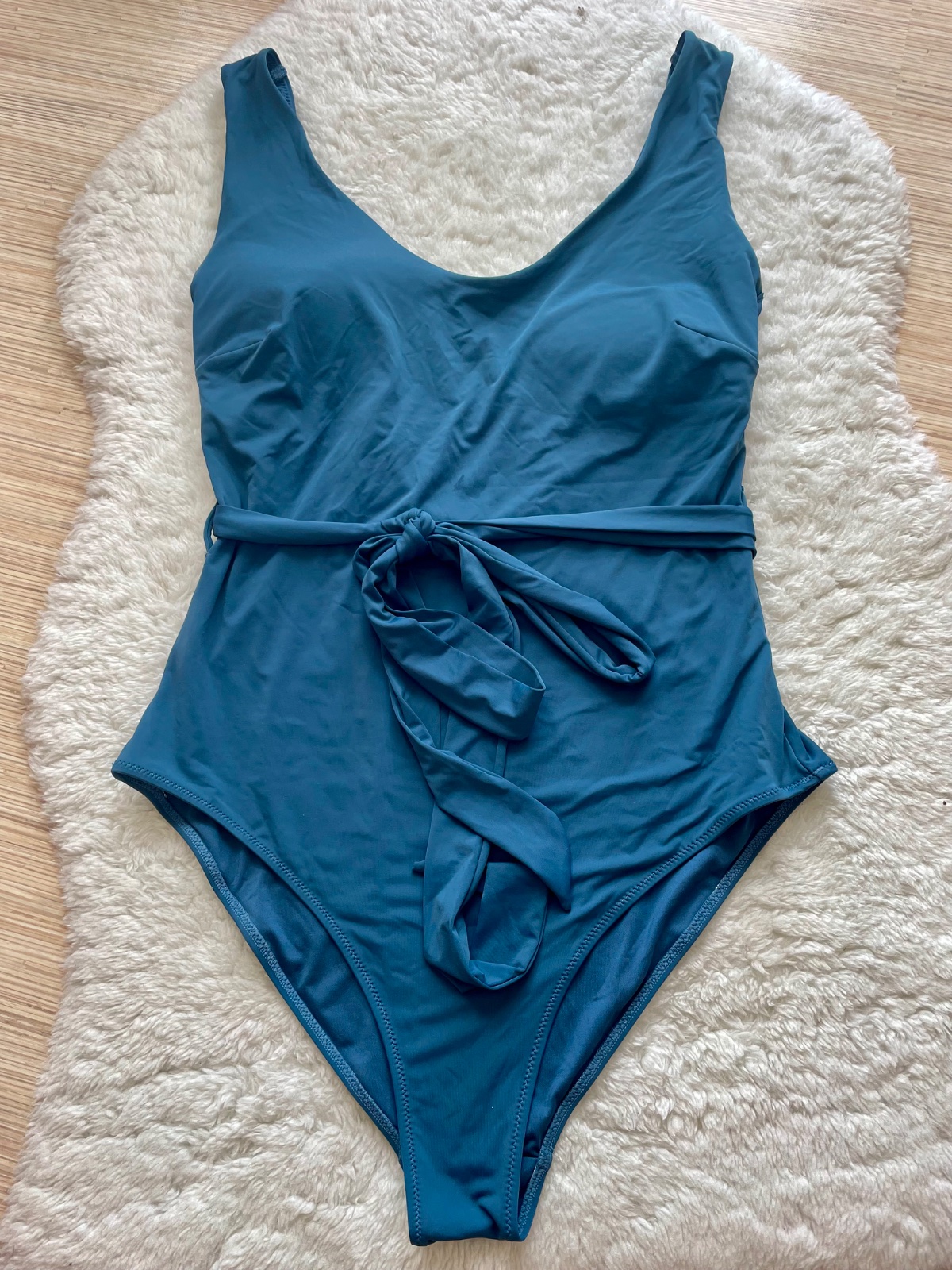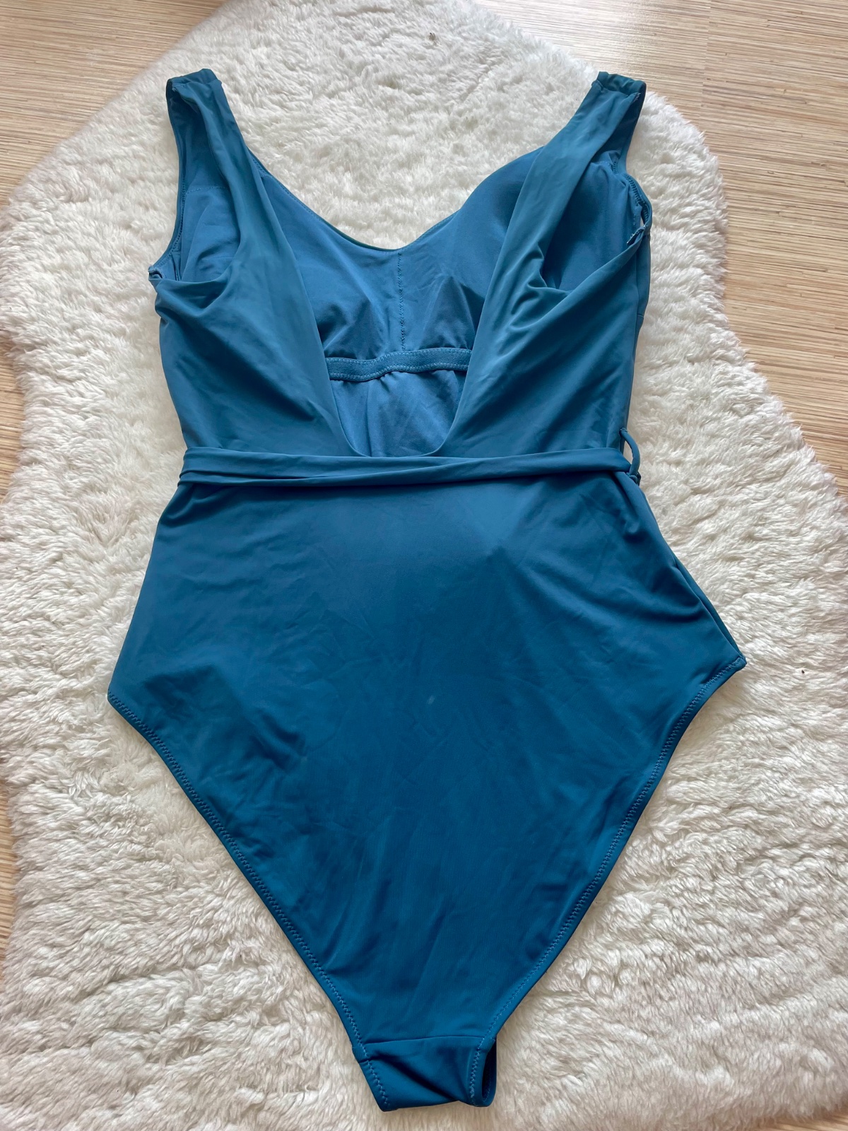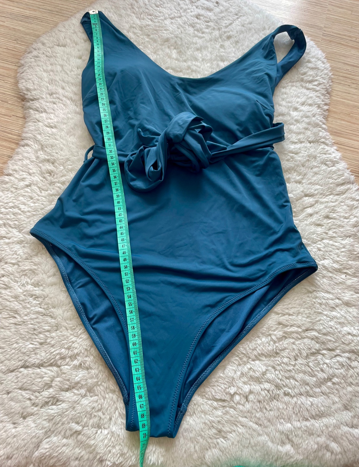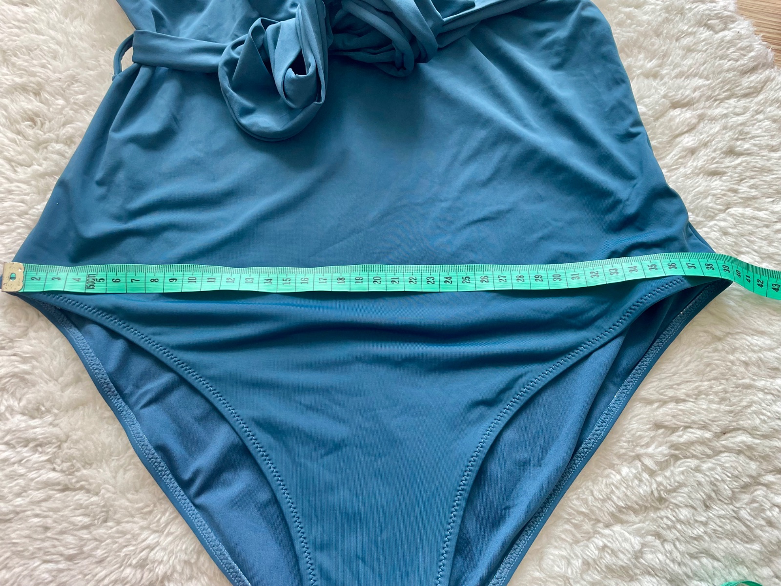 Kvalitne plavky krasnej petrolejovej farby obzvlastnene uvazovanim, s vypchavkami, cele podsite, velmi prijemny material, myslim, ze su z Lindexu, rozmery na foto