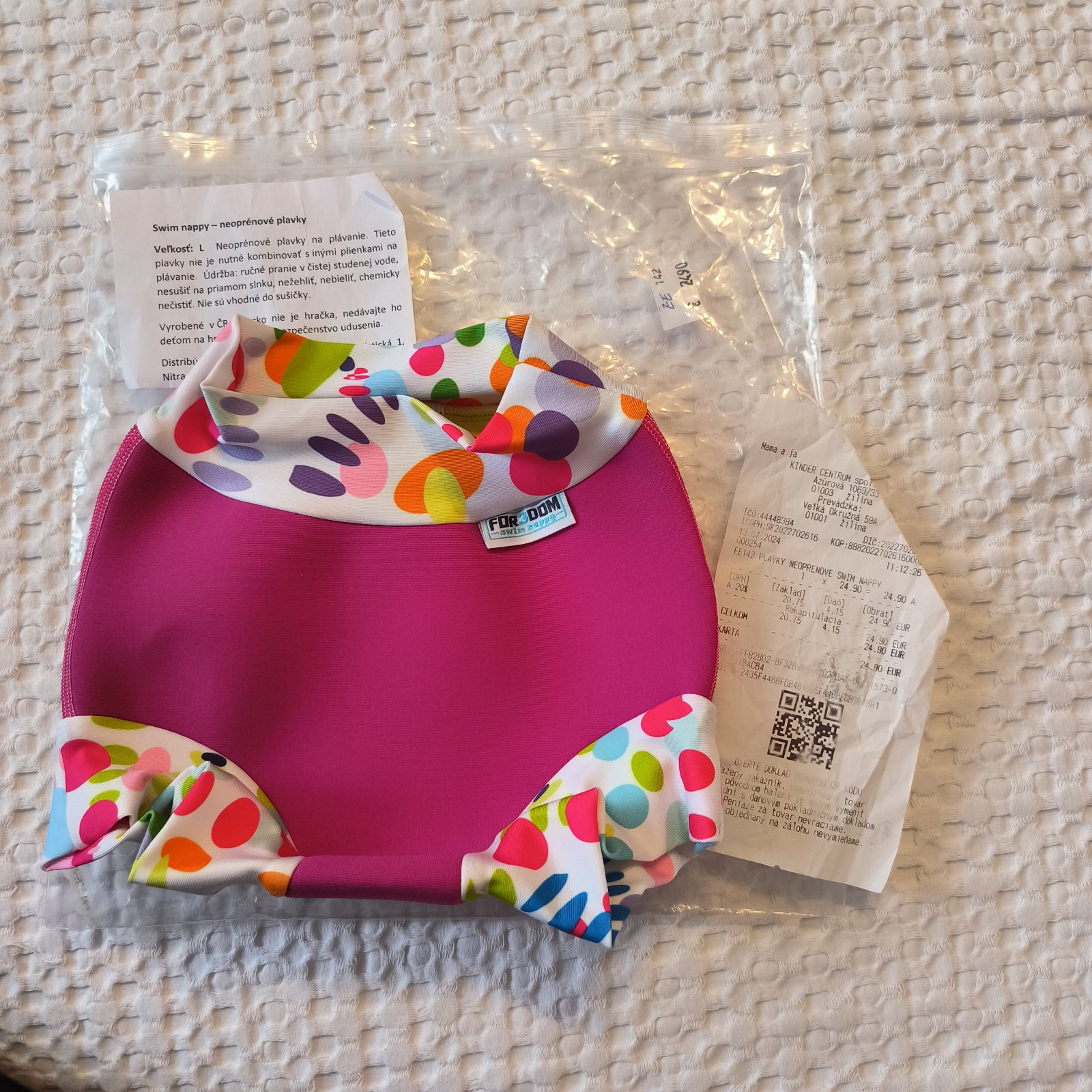 Predám úplne nové neoprénové plavky veľkosť L (na 10-13kg). Nevyužili sme, dcéra si ich odmietla obliecť, tak sme používali len plienky do vody. Pôvodná cena 25 eur. Moja cena 15 eur.