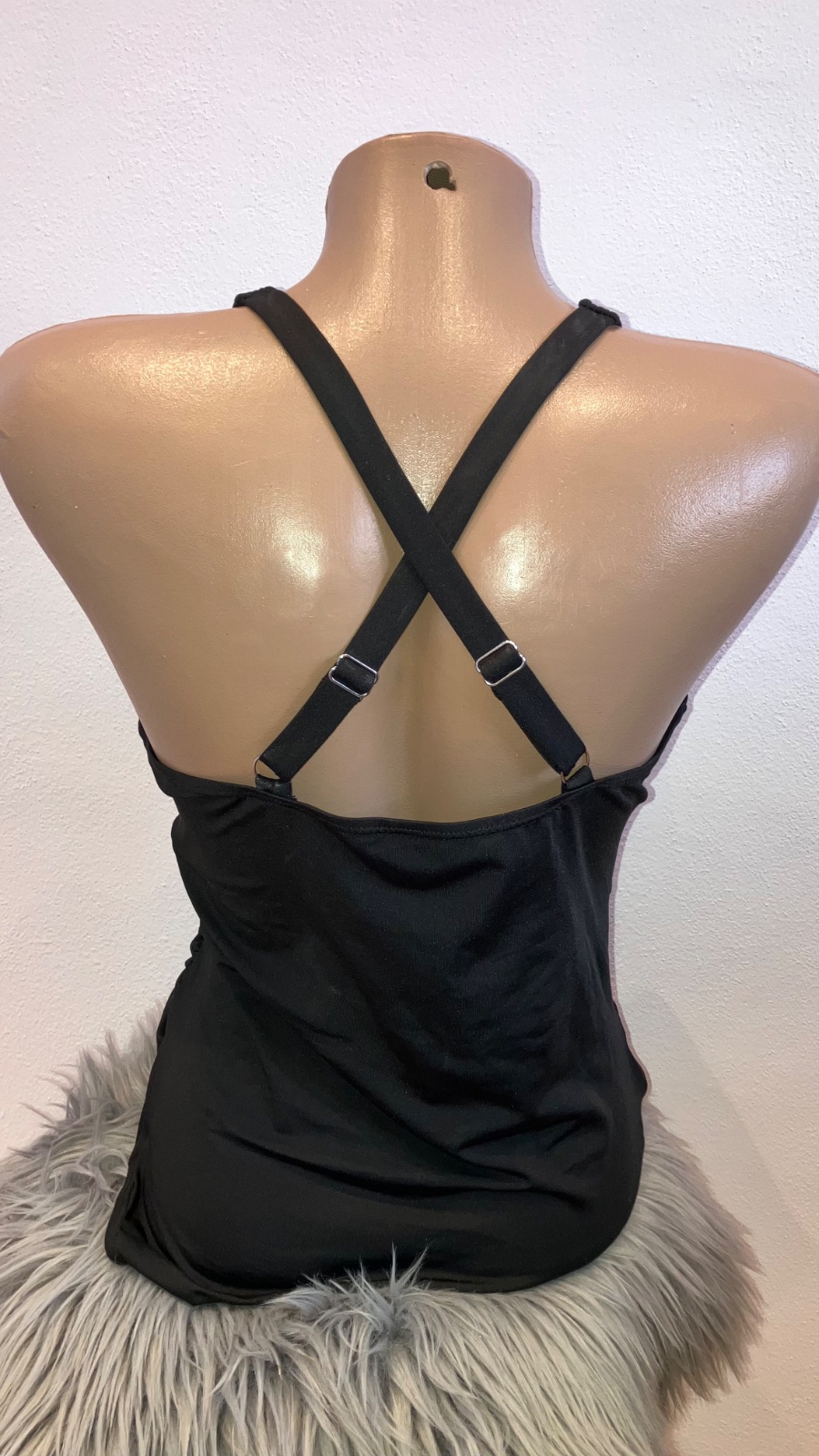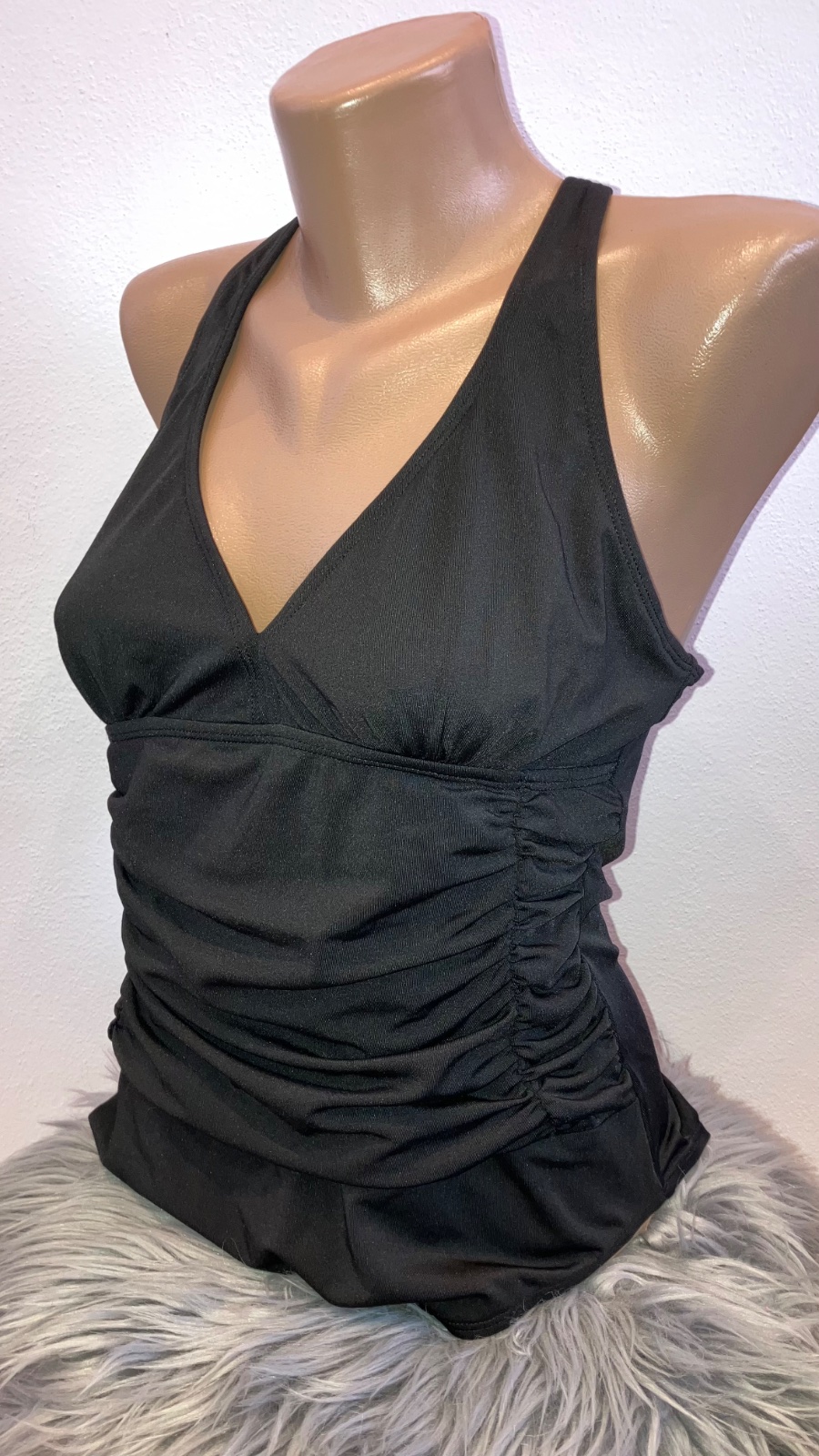 Dámske jednofarebné jednodielne plavky, nazberkané, s nastaviteľnými ramienkami.