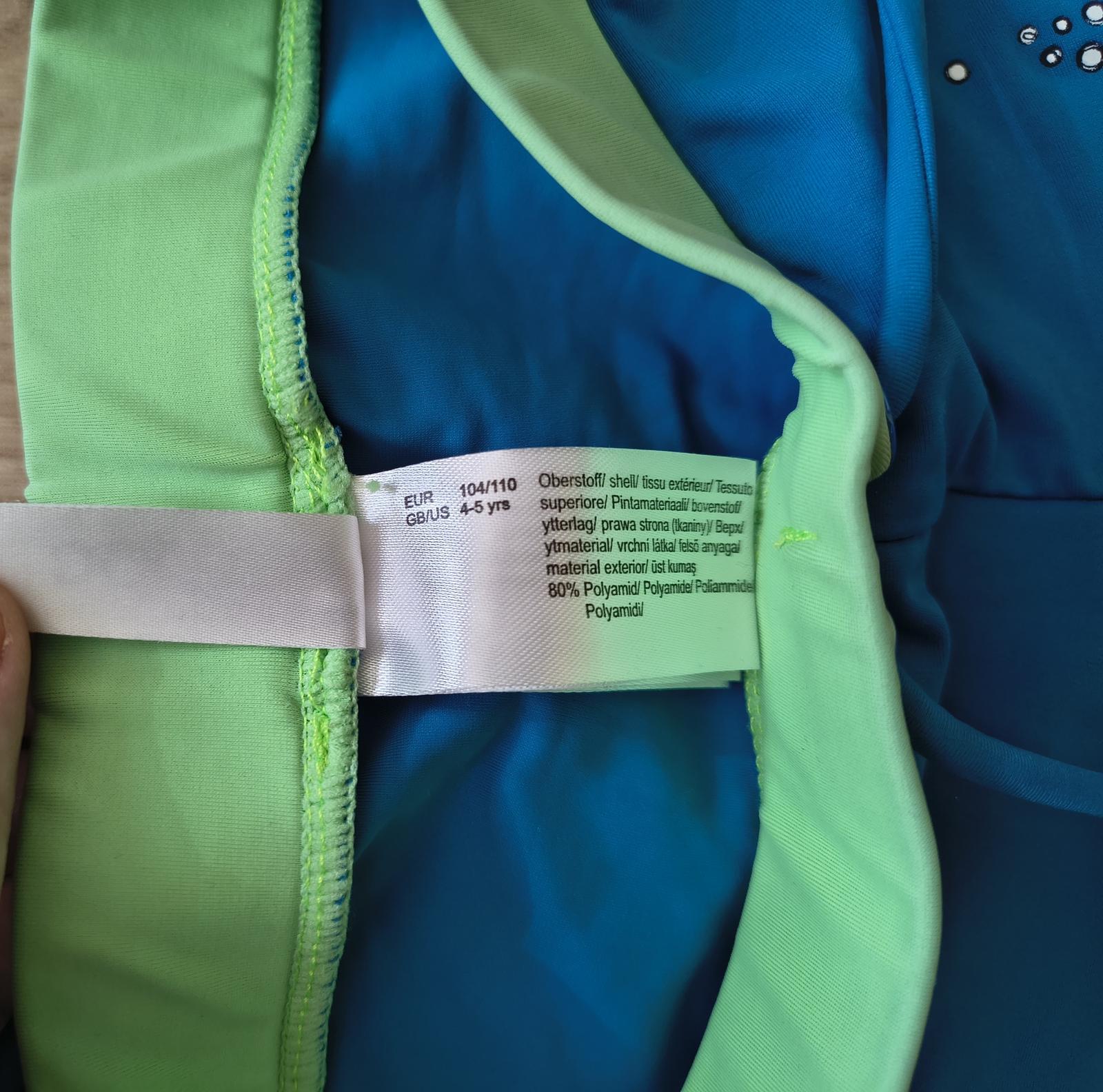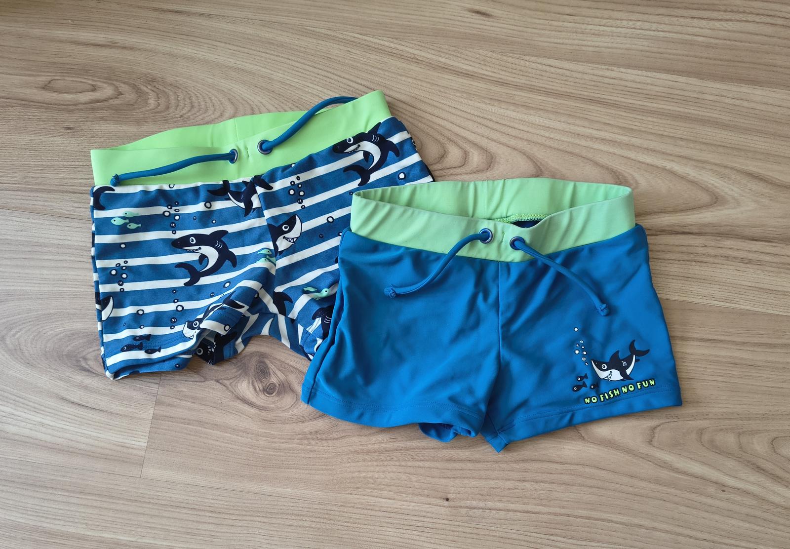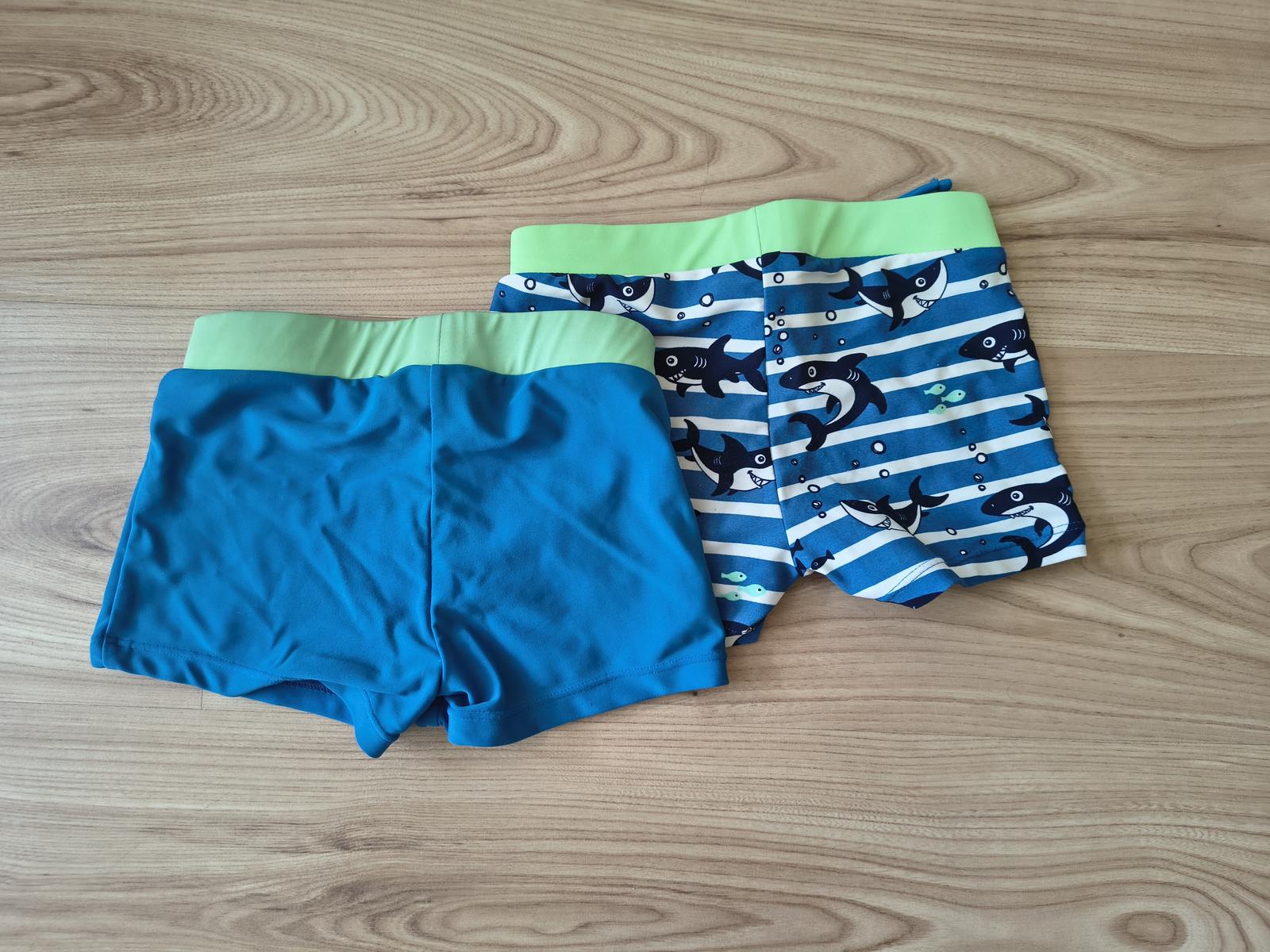Dvoje plavky boxerkového strihu, v kombinácii modrej a zelenej farby, boli nosené pár krát na striedačku s inými. Veľkosť 104/110. Cena za oba kusy spolu