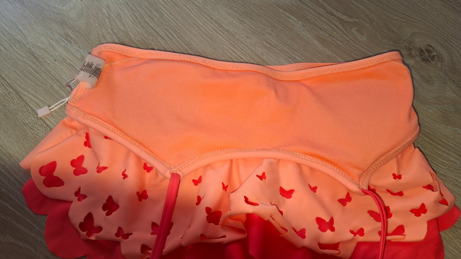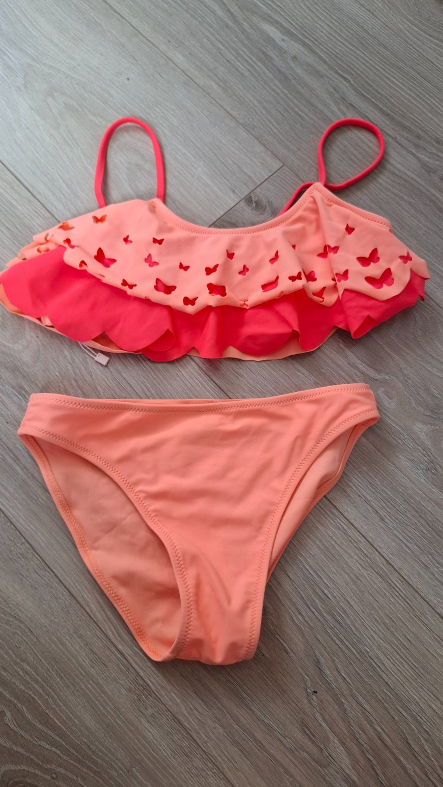 Výborný stav. Neónová oranžová. Vystužená podprsenka. Neboli v mori , iba občas počas 1 sezóny v bazéne. Rozmery vraj na 12,14 rokov. Dcera mala veľkosť 140/146. Rada premeriam