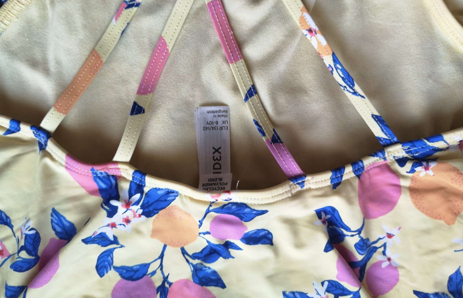 Materiál: 73 % recyklovaný polyamid, 27 % elastan