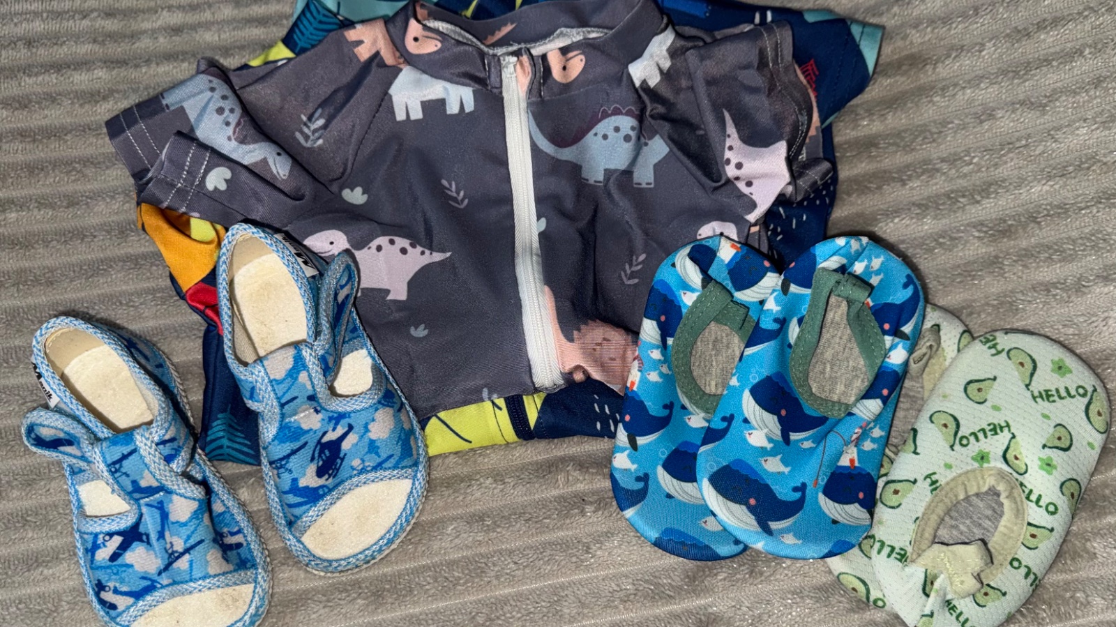 Overal do vody jeden pre najmensie dieta a druhy sme potom ked podrostlo dieta pouzili boty do vody abysi dieta nepopalilo nozku jedny nove modre a druhe zelene pouzite darujem k nakupu papucky sme pouzivali pri prvych krockoch pri mori celi set urco vyuzijes
