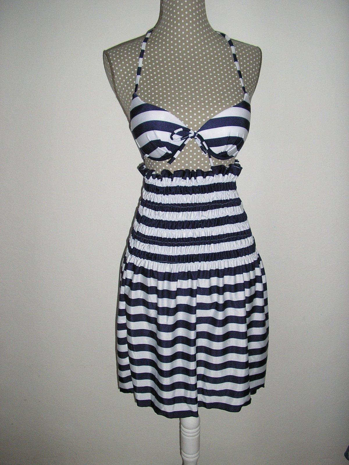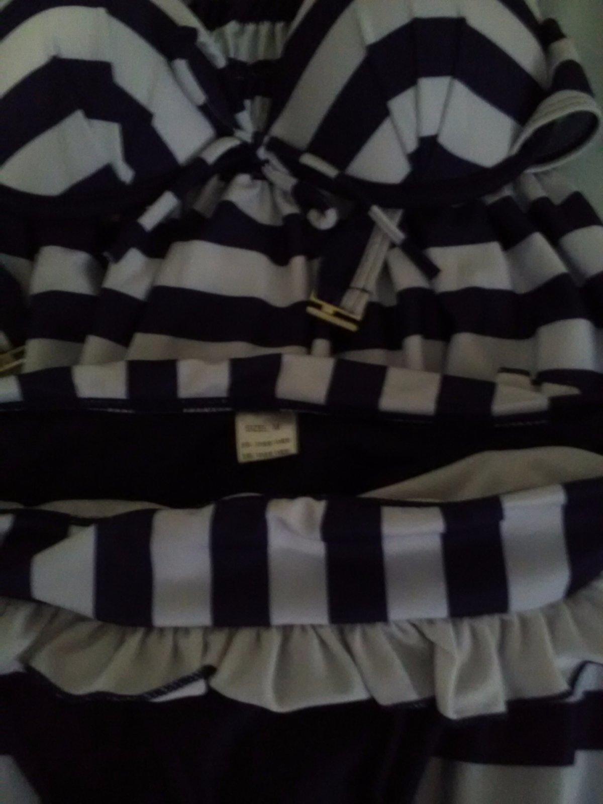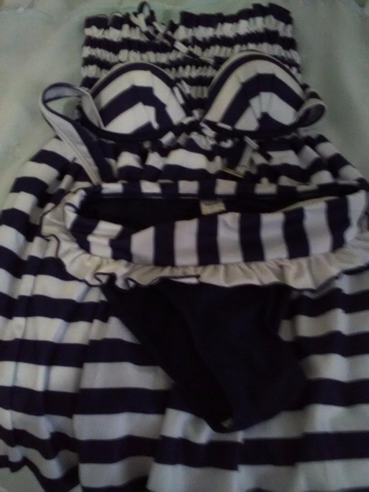 S vystuženými košíčkami, ramienko okolo zátylku, vzadu s klipsovým uzáverom. Jednofarebné nohavičky s fodričkami spravia model ešte atraktívnejšími. Nevšedný,elegantný, módny kus.