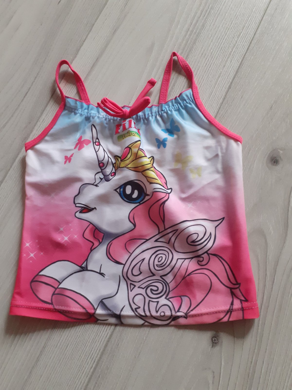 • plavkove tricko do vody • velkost pisana 98/104, my sme nosili 110-116, rozmery nafotene • pekny noseny stav, akurat vpredu par fliackov od laku na nechty ci od coho minimalny nakup 3 EUR