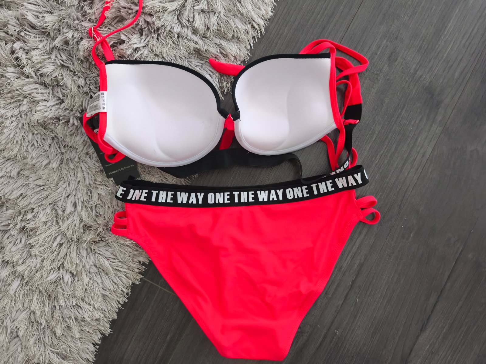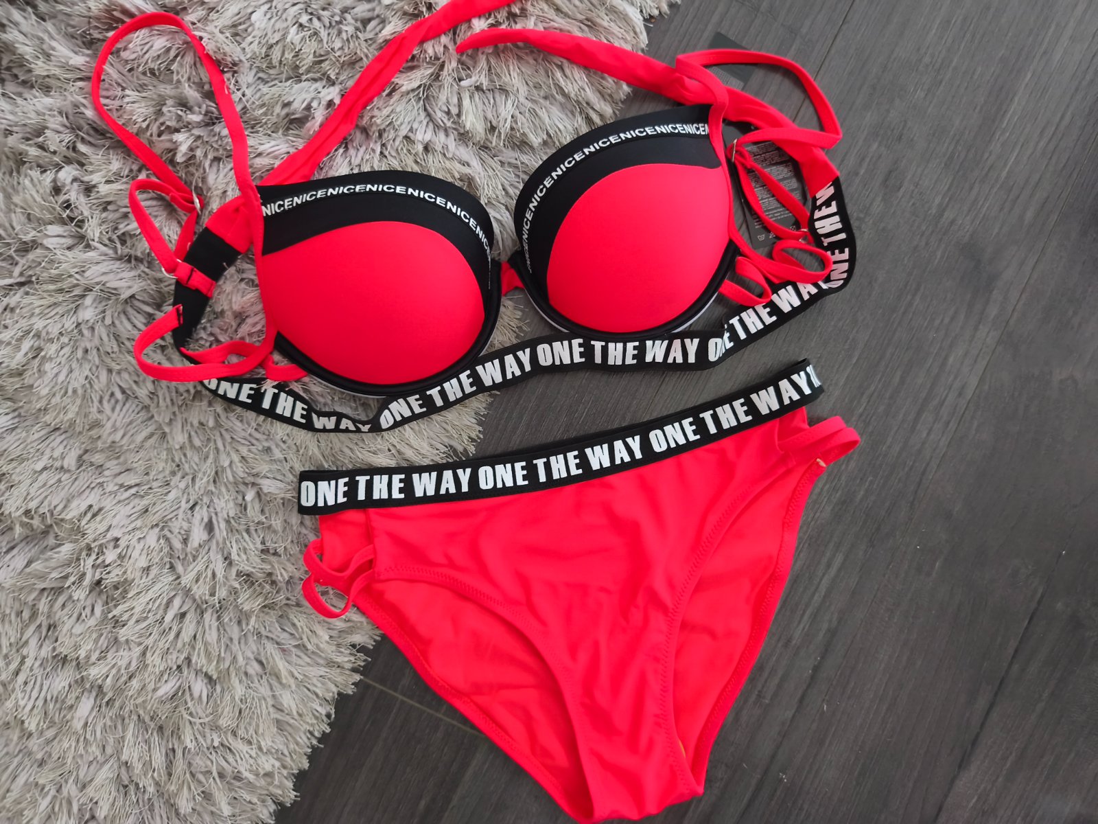 VÝPREDAJ POSLEDNÉ 2 KUSY. Vystužené plavky s push up. Ramienka sú nastaviteľné pevné. Farba nádherná sýto červená. Nohavičky klasický strih s prestrihmi na bokoch.