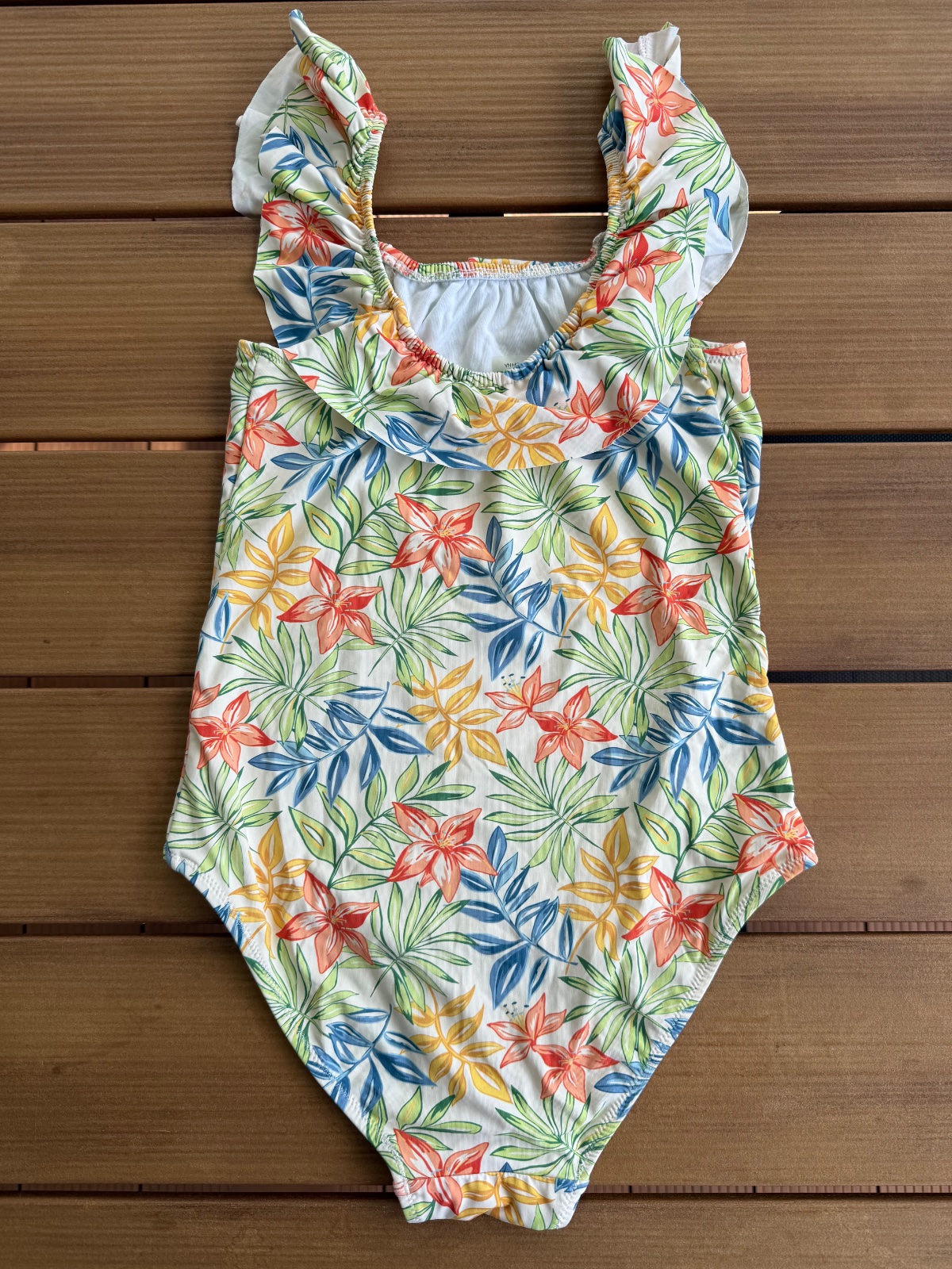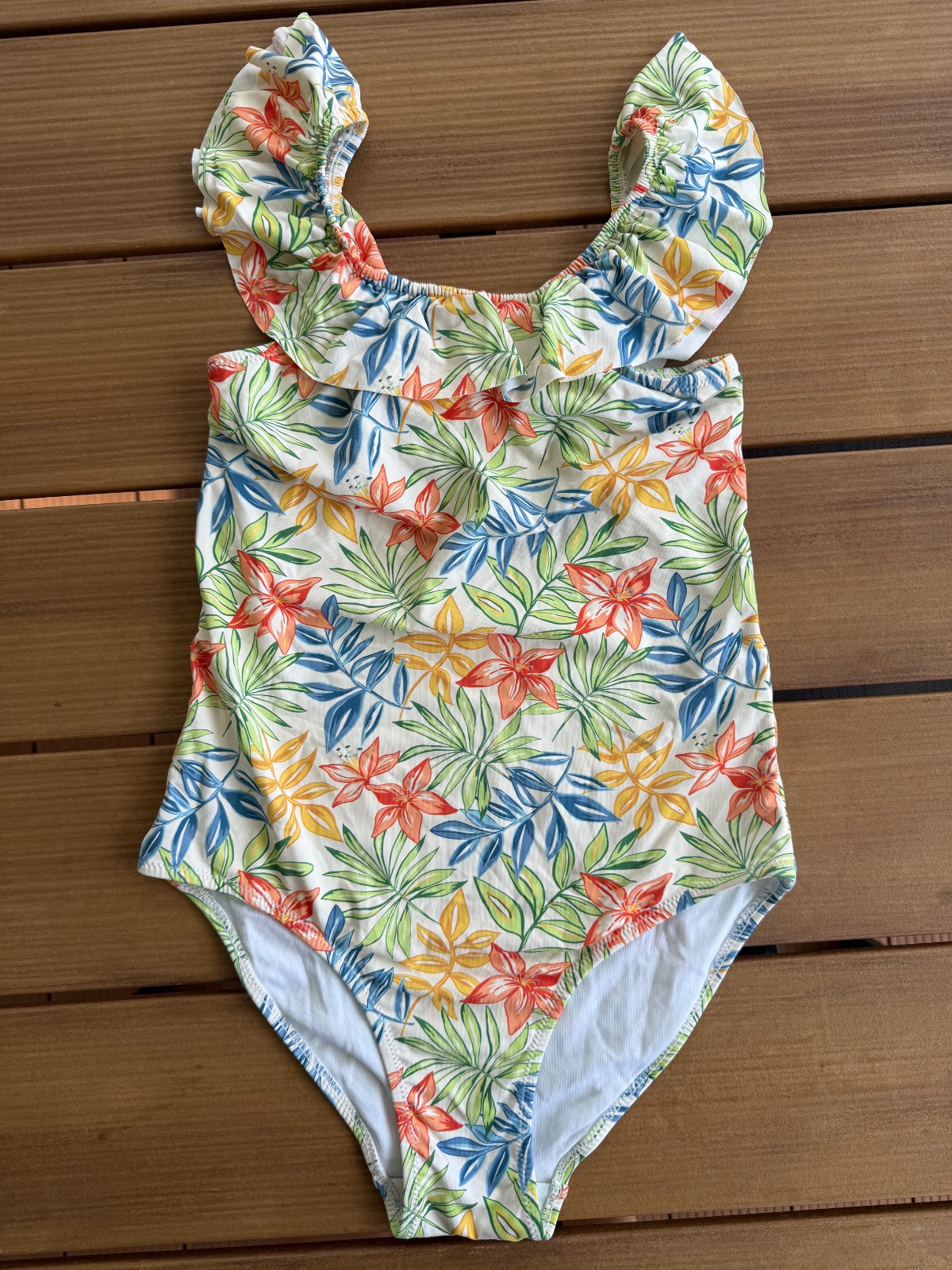 Krasne plavky s volanom okolo ramien.