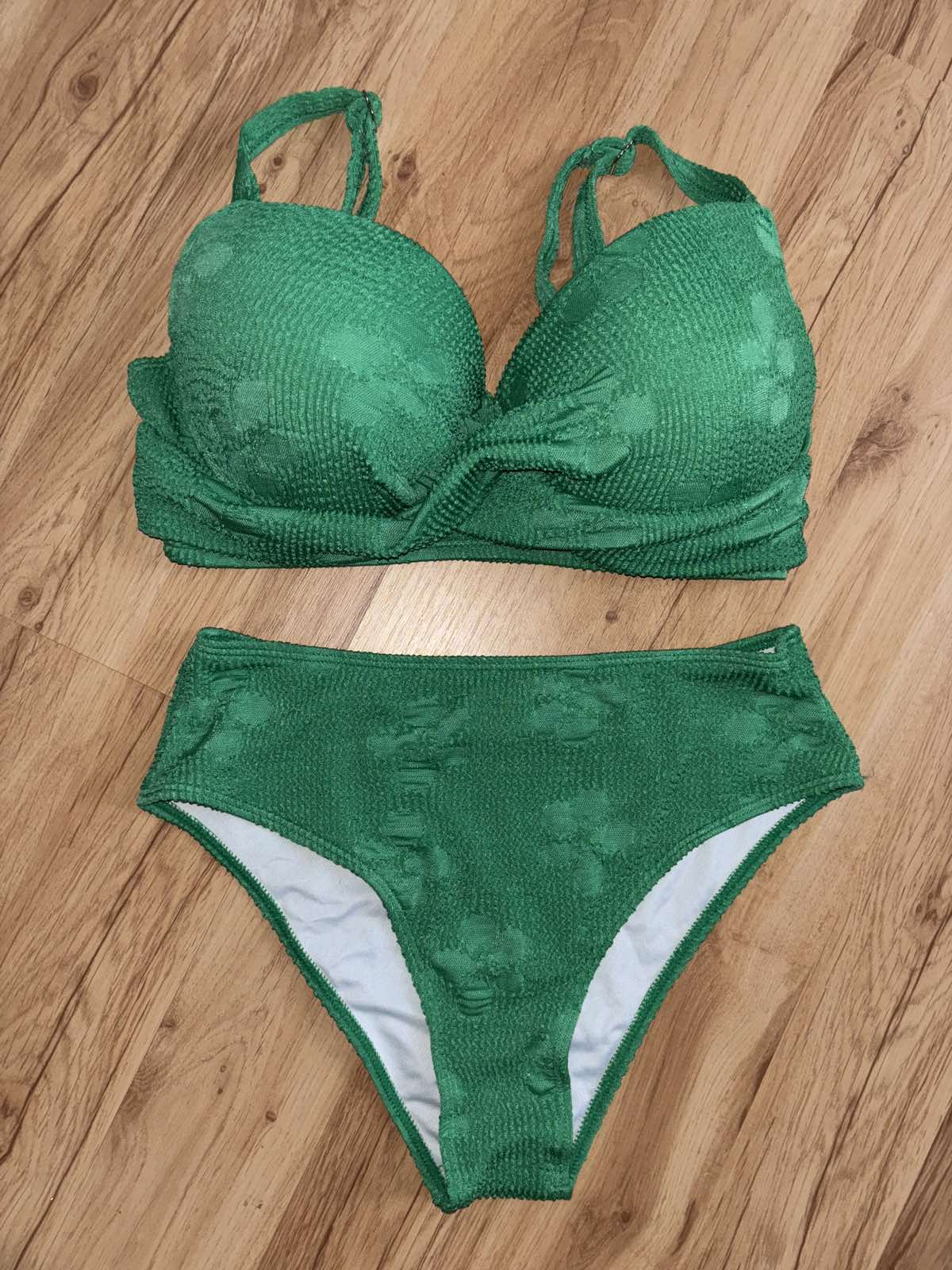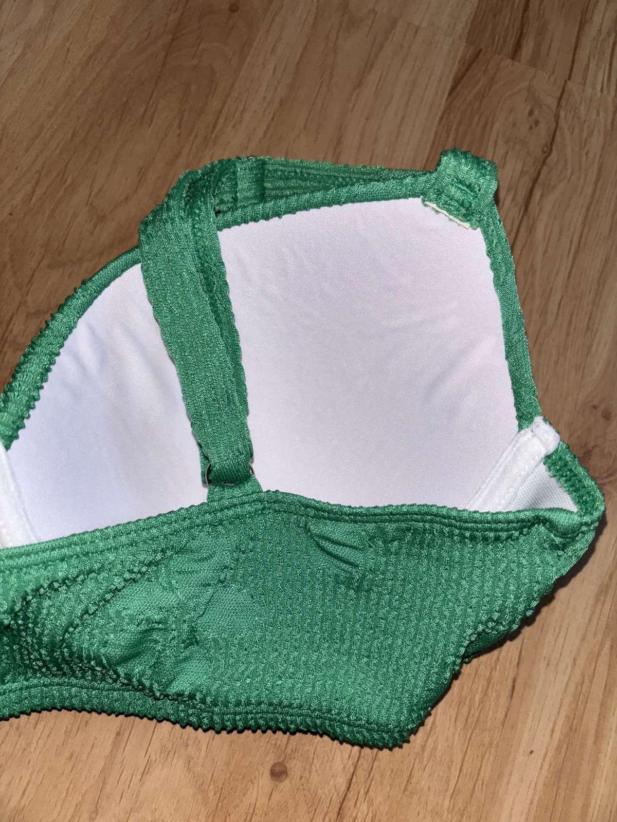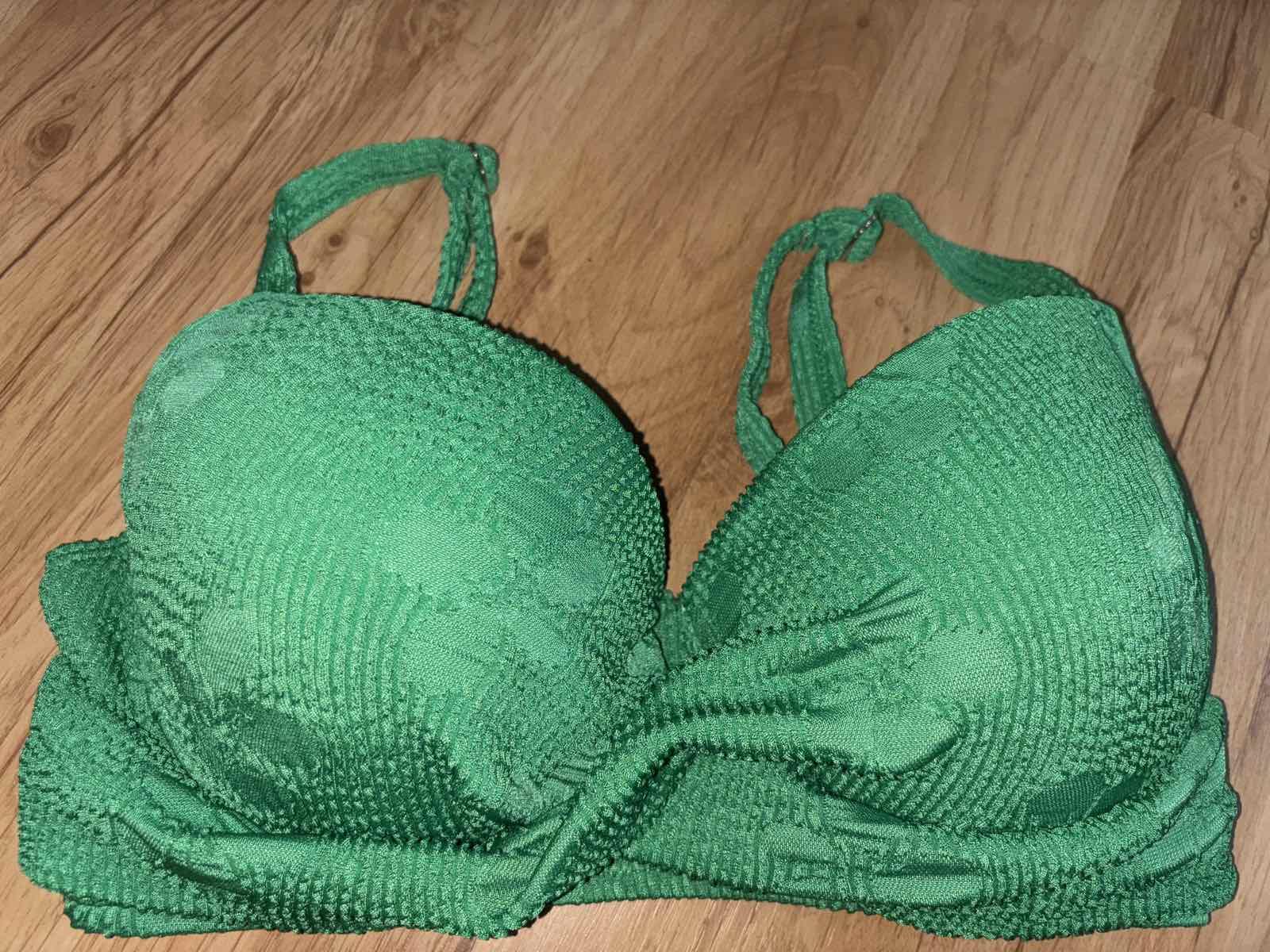 Nové, zelené, pre väčšie prsia, kolekcia DD, podprsenka s kosticami a výstužou, skvele sedí, veľkosť 75DD/E, 80D/DD, nohavičky s vyšším pásom, veľkosť S