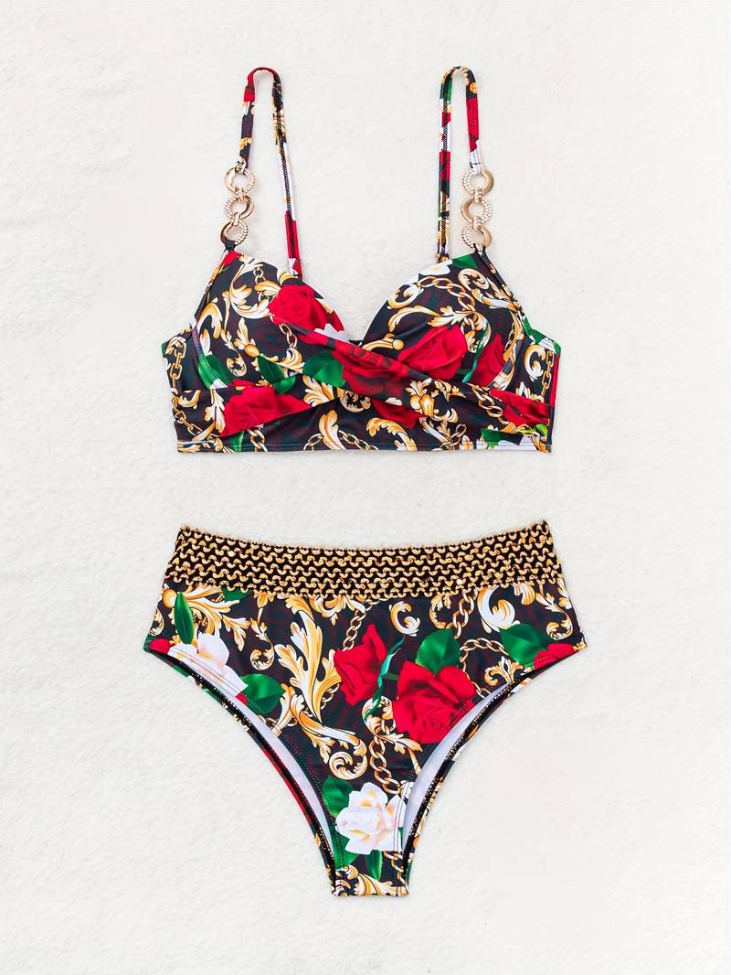 Plavky High waist floral